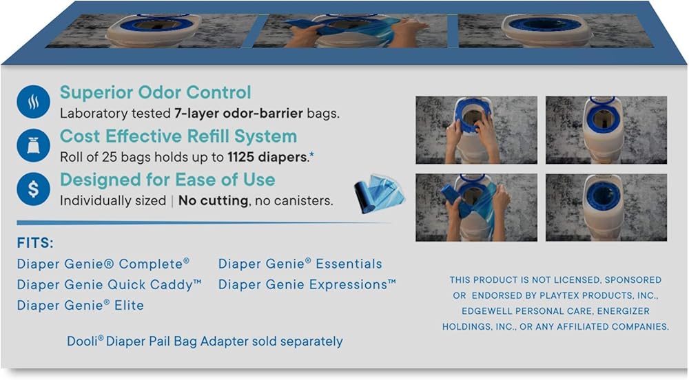 تم تصميم حقائب العلامة التجارية دولي لتكون العرض المثالي لمحول الحقيبة المتوافق مع دولي والطول المثالي لدلو ديابر جيني الخاص بك. استخدمه مع محول حقيبة الحفاضات من دولي ليناسب سلال حفاضات ديابر جيني من بلايتكس التالية: ديابر جيني إيليت وديابر جيني إسنشيالز وديابر جيني إكسبريشنز. يمكن استخدام الحقائب أيضًا بدون محول سلة الحفاضات لتناسب أوبي وبولا وديكور كلاسيك وميني استخدم أكياس إعادة التعبئة المكونة من 7 طبقات تم اختبارها معمليًا من دولي للحصول على طبقة إضافية من الحماية من الرائحة -- 7 طبقات من الغشاء البلاستيكي الرقيق للغاية تحافظ على جميع الروائح الكريهة بالداخل. بالإضافة إلى ذلك، فهي بمقاسات فردية. عندما تكون حقيبتك ممتلئة، ما عليك سوى ربط عقدة وإرمها -- لا حاجة إلى قطع الحقائب! تتضمن البكرة 25 كيس لحمل ما يصل إلى 750 حفاضة. ملحوظة: قد تختلف التعبئة. *هذا المنتج ليس مرخصًا أو مرفوعًا أو معتمدًا من قبل شركة بلايتكس برودكت إنرجايزر هولدنجز، إنرجايزر هولدنجز، شركة أوبي وورلد، بيرهيد، إنكورد، بوبوبوبولا، جورو سيلز آند ماركتنغ بارتنرز إل إل سي أو ديكور، ريجال لاجر أو أي شركة تابعة لها. تأسست شركة دولي بروداكتس عام 2015، وهي شركة عائلية تركز على استخدام براءات الاختراع لتحسين أجهزة إدارة المخلفات.