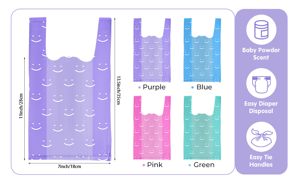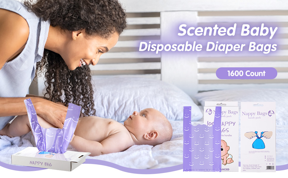 Scented Bag: this disposable diaper bags have a nice smell, help hide diaper smell, wet and garbage smell, very suitable for going out, nursery, home, car, office, bring you a nice and comfortable use experience