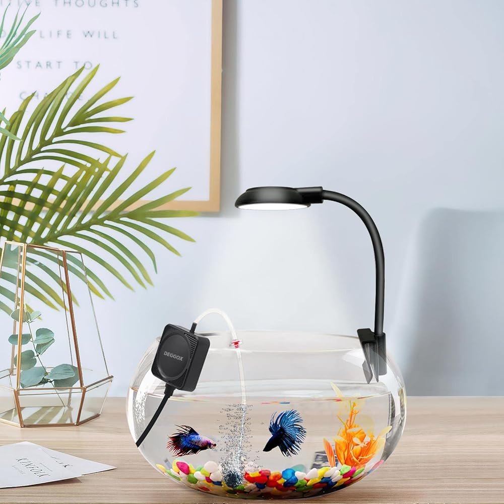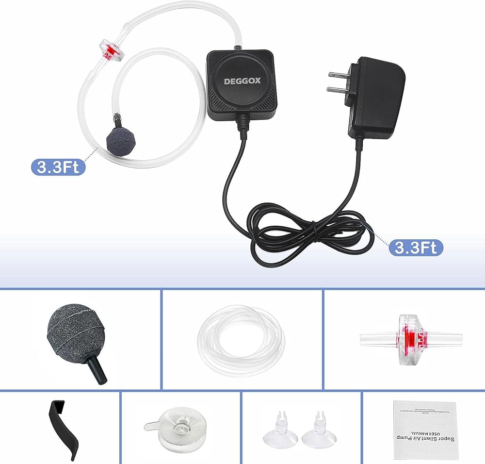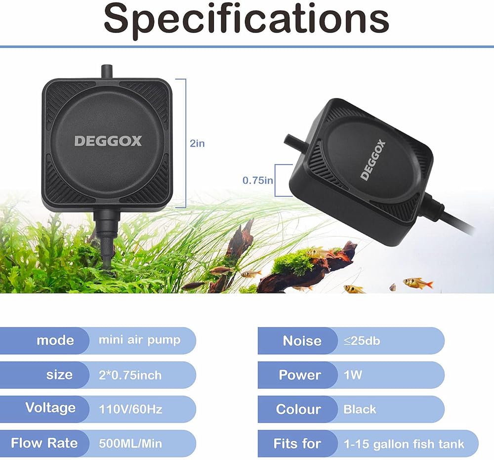 DEGGOX Mini Aquarium Air Pump for 1-15 Gallon Fish Tank 1 Watt Oxygen Small Aerator for Fish Tank Bubbler with Air Stones Silicone Tube Check Valves