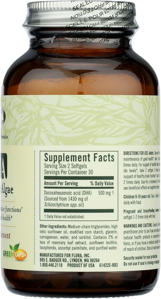 GIVE YOUR BODY WHAT IT NEEDS: Flora's DHA Vegetarian Algae provides the omega-3s your body is looking for to develop a healthy brain, heart, and nervous system. Especially useful for pregnant or nursing women.