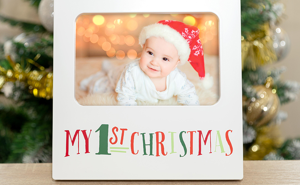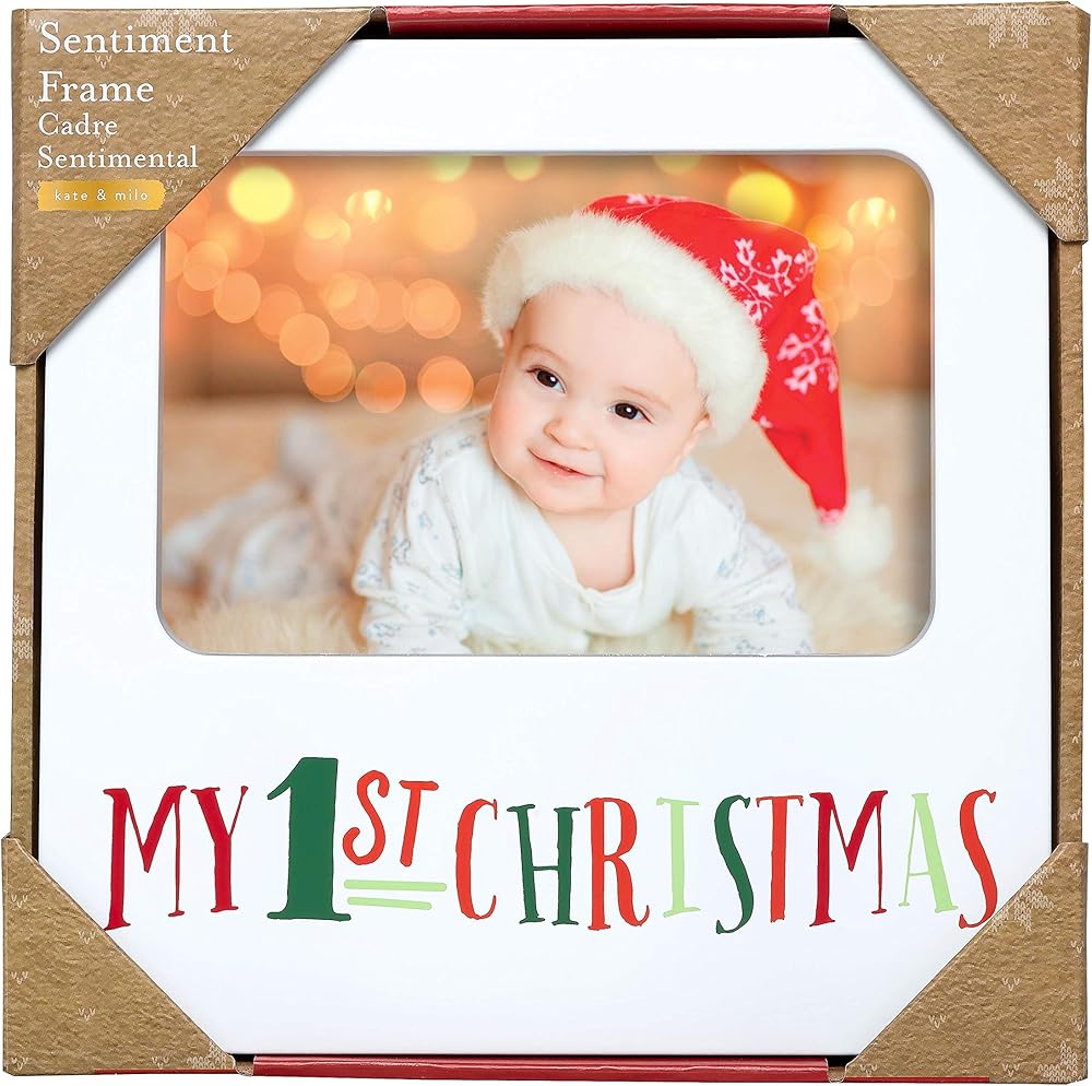 Joy to the world Your little one is finally here – and it's time to celebrate their very first Christmas This special season deserves an extra-special keepsake, and Kate & Milo's My 1st Christmas Keepsake Photo Frame couldn't be more perfect This classic white frame reads “My 1st Christmas” in red and green font The frame's simple, yet fun, design leaves plenty of room for your favorite holiday baby photo to really shine And the attached easel means it's ready to display right on your mantle, or anywhere in your home, for all to see It might say “My 1st Christmas” but we're betting this festive frame becomes a treasured part of your family's holiday decor for years to come Your little one, and all your friends and family, will love looking back on this adorable memory of their very first Christmas, so make sure you choose a very special photo We recommend this beautiful sentiment frame as a holiday gift for new parents or their little one, a baby shower gift, or a baby registry addition for expecting parents Whatever the occasion. Frame Dimensions: 725” W x 725” H x 05” D; Photo Insert: 6” W x 4” H