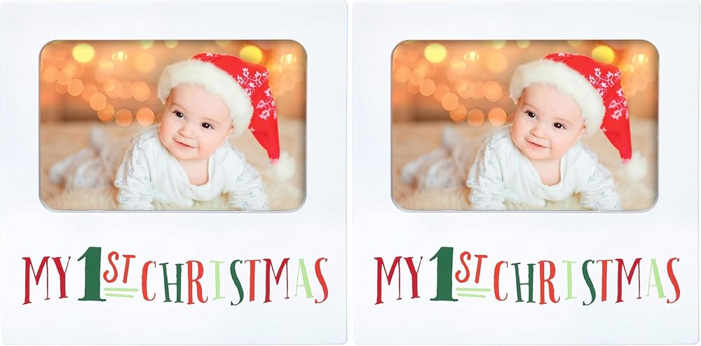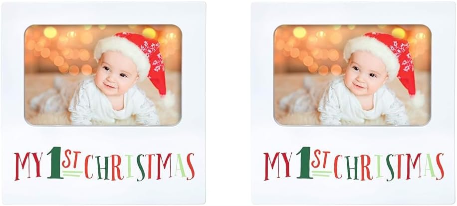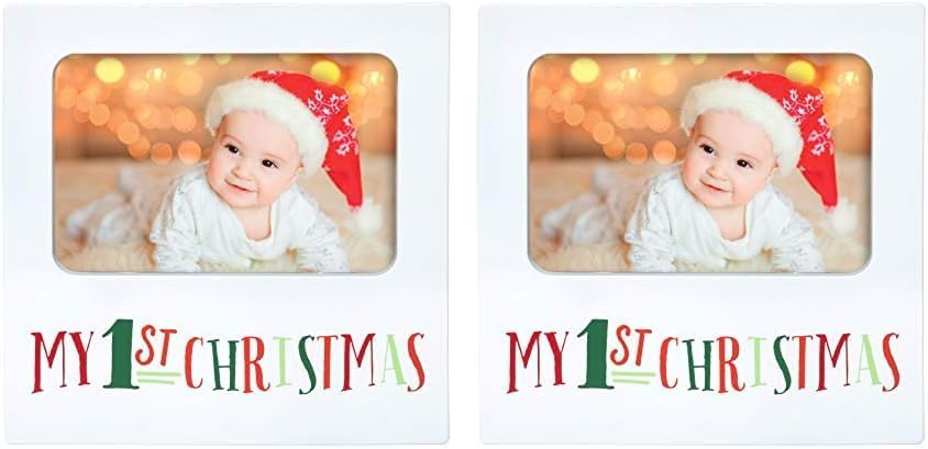 إطار صور Kate & Milo My 1st Christmas Baby، تذكار السنة الأولى لعطلة الطفل، ديكور منزلي للعطلات، إكسسوار منزلي لعيد الميلاد، إطار صورة لطاولة حديثي الولادة، إدراج صورة مقاس 4 × 6 بوصة، أبيض (عبوة من قطعتين)