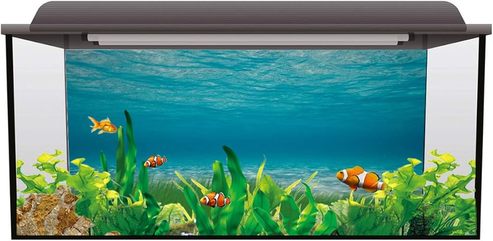 T&H XHome حوض السمك ديكور خلفيات مياه زرقاء نقية نمط خزان الأسماك خلفية حوض السمك ملصق ورق جدران ديكور صورة ملصق لاصق PVC 24.4 بوصة عرض × 12.4 بوصة ارتفاع