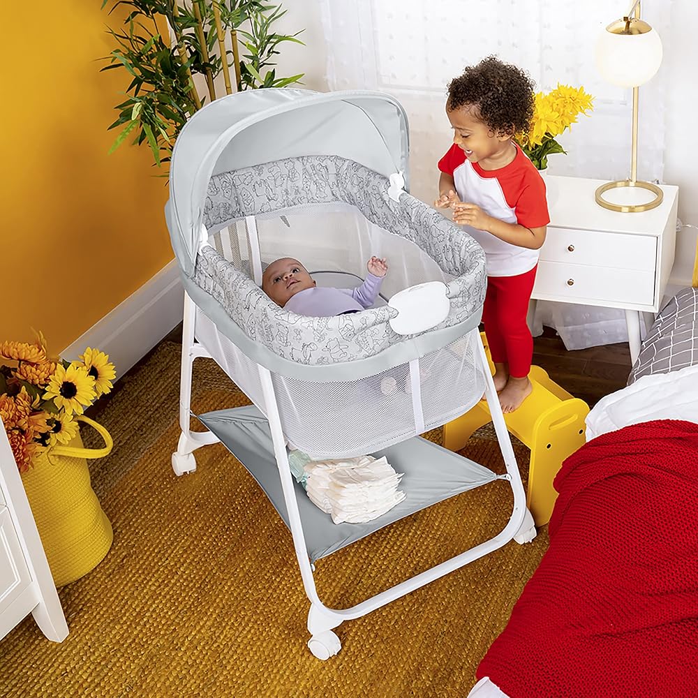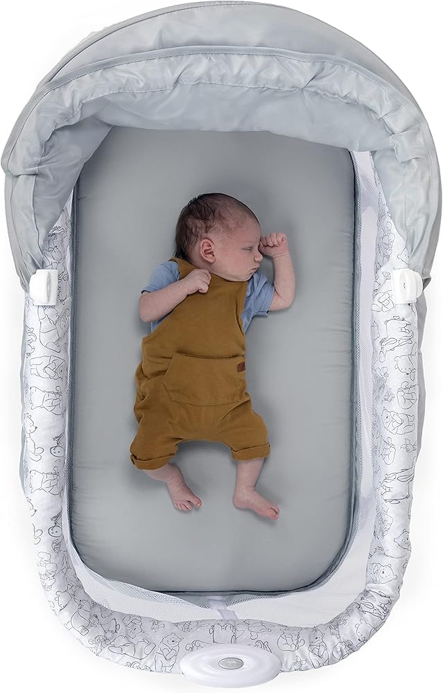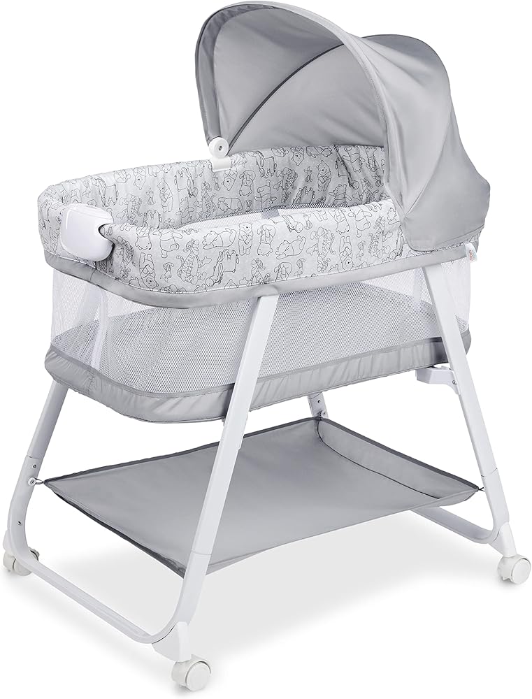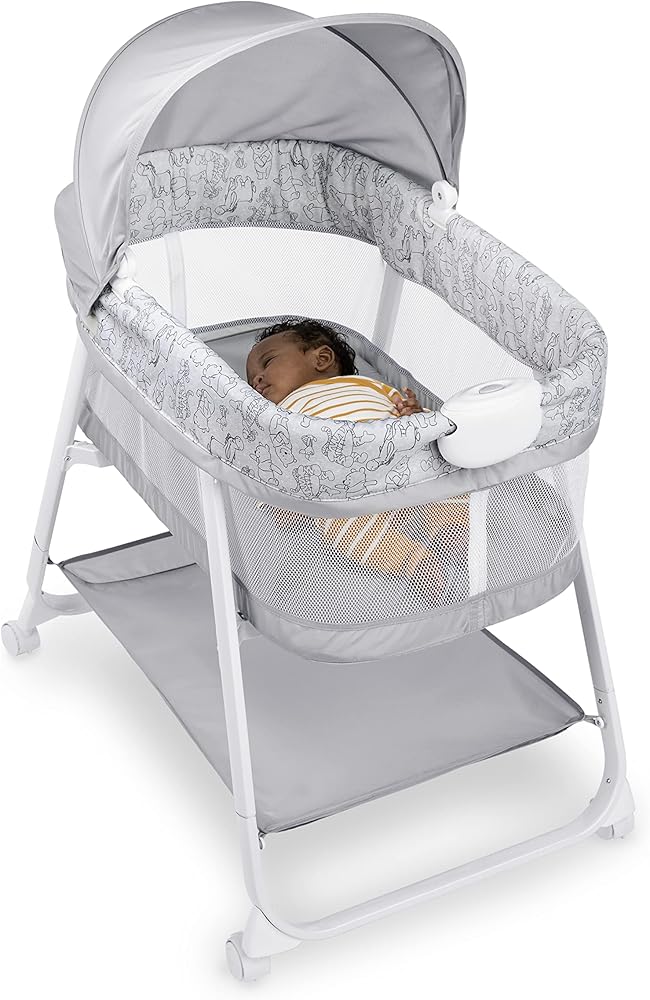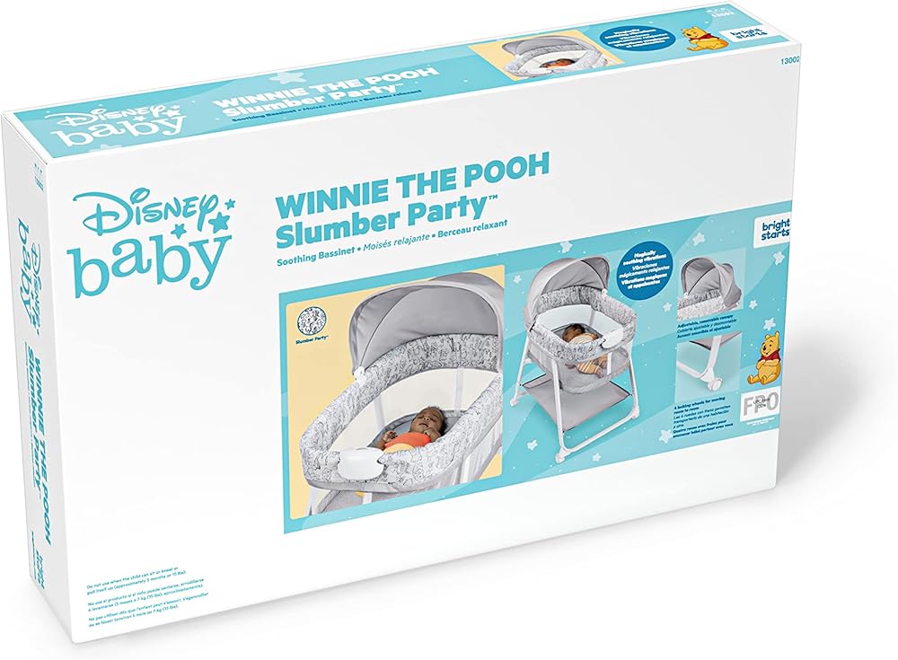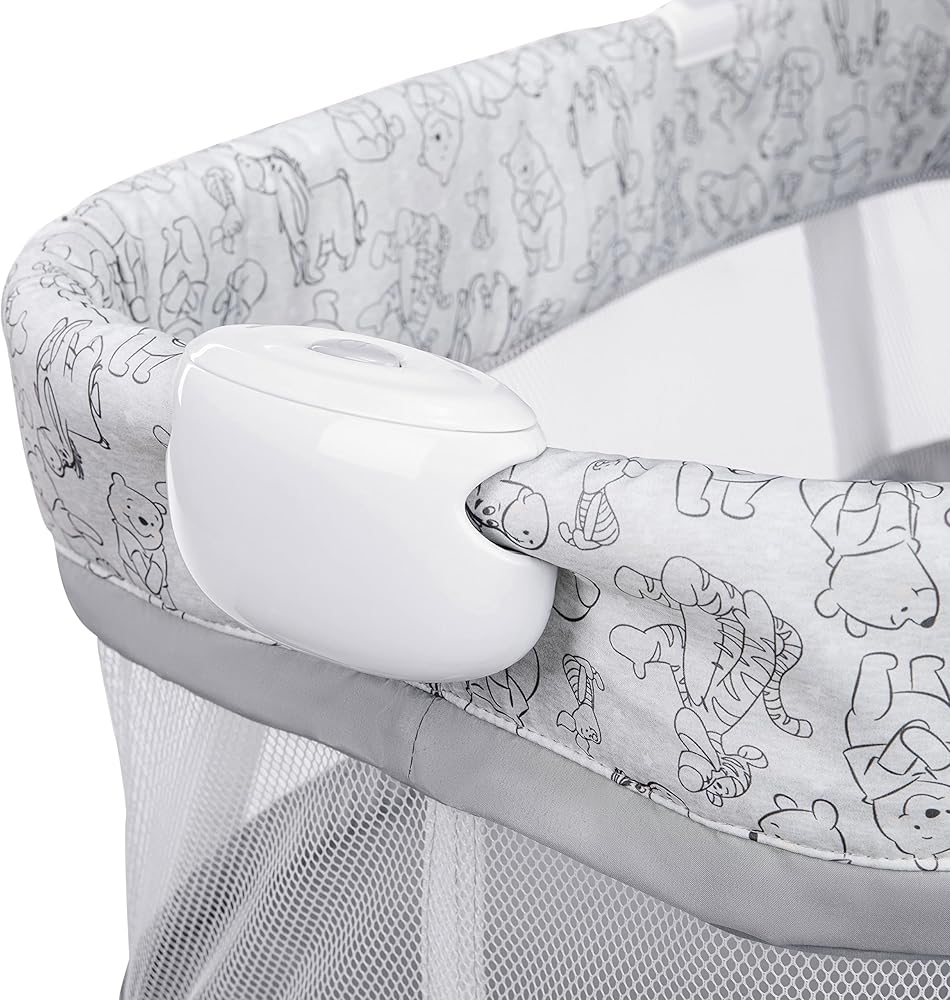 استدعاء جميع منتجات الهيفالوميبس و"سنوزلز"! لعبة ويني ذا بوه من ديزني وزملائه من مائة خشب الصقر سوف يدير أحلام سعيدة لحديثي الولادة في هذا السرير المهدئ من برايت ستارتس وديزني بيبي. احتضن طفلك بالاهتزازات المهدئة لخلق بيئة مريحة وهادئة حتى لآخر الليالي وأوائل الصباح. العجلات تجعل من السهل نقل المهد المحمول من غرفة إلى غرفة. حافظ على سلامة الطفل وثباته بجانب سريرك مع سرير الطفل هذا. سيتناسب التصميم المحايد بين الجنسين تمامًا مع ديكور منزلك، حيث يتميز شخصيات ويني ذا بوه الكلاسيكية مثل تيجر وبيجليت وإيور وبالطبع الدب القديم السخيف نفسه بوه! لأن النوم الجيد في الليل نقي *سحري. *