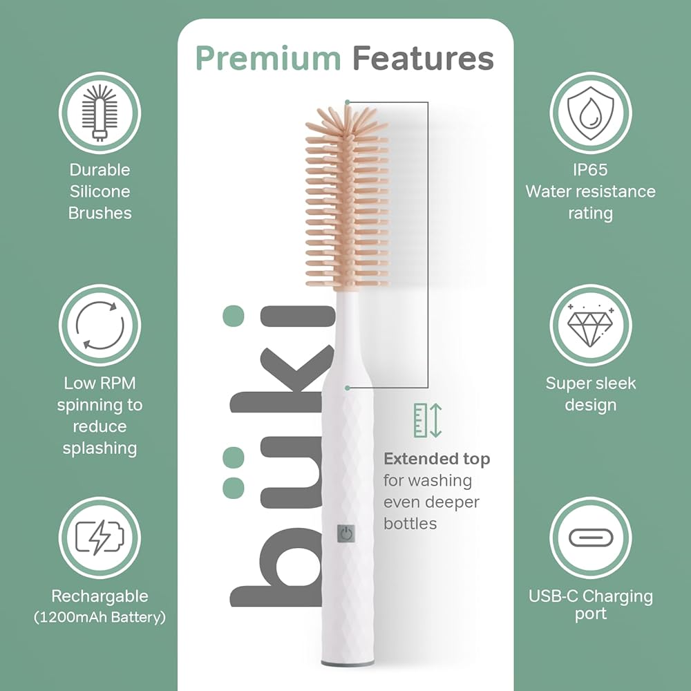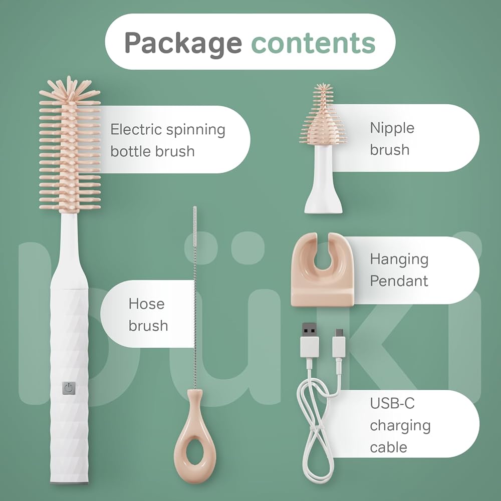 Powerful and Rechargeable: With a rechargeable battery and powerful motor, this cleaning brush can easily remove even the toughest milk and formula residue from baby bottles and other feeding accessories.