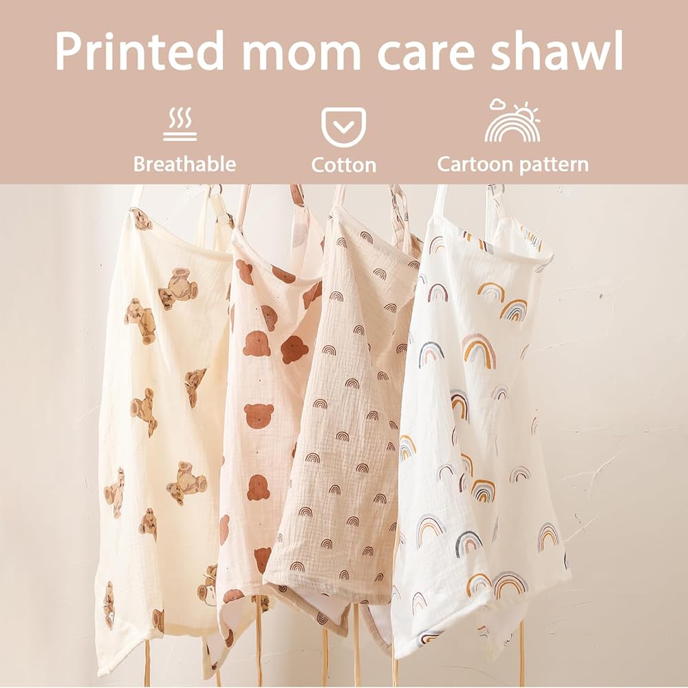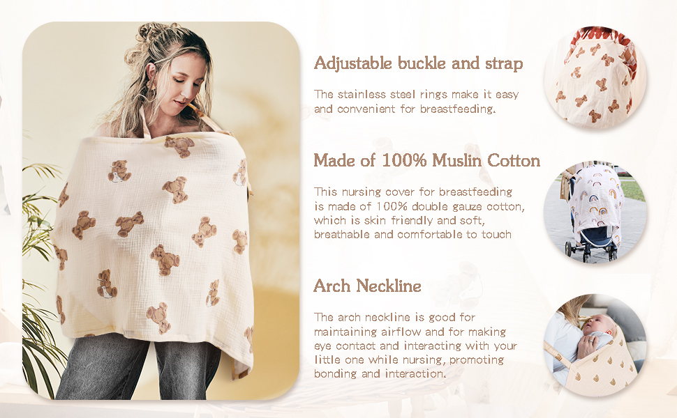 【خط رقبة مفتوح】: تتميز مريلة الرضاعة من الموسلين بخط رقبة مفتوح، مما يسمح بتدفق الهواء والاتصال المباشر بالعين مع طفلك. تأكدي من الوضعية الصحيحة وشاركي الابتسامات المشرقة أثناء الرضاعة.