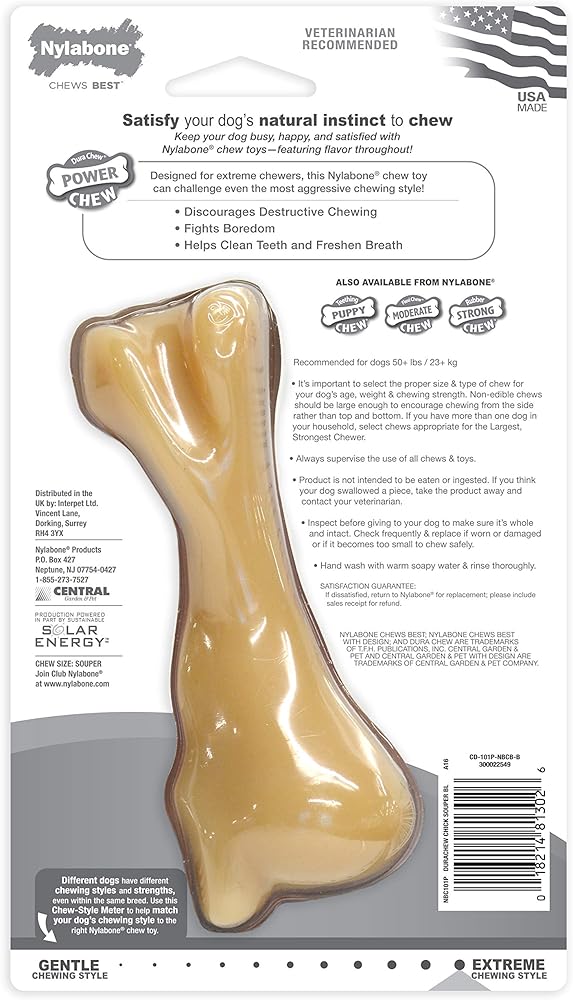 Nylabone's been making the very best chewing solutions since 1955, so we know a thing or two about CHEW Now, we've dog ified everyday objects that will introduce extra fun and flair to your dog's chew toy collection The Power Chew Lobster chew toy for dogs features a unique lobster inspired shape and delectable flavor throughout for a one of a kind chewing experience. With 3 chewing ends and an arched shape, this lobster chew toy is easy to hold from claw to tail. Plus, it helps reduce plaque and tartar as dogs chew. Made from our most durable material, this tough chew toy promotes healthy, non destructive chewing habits and will make your dog (and you) giddy with joy.