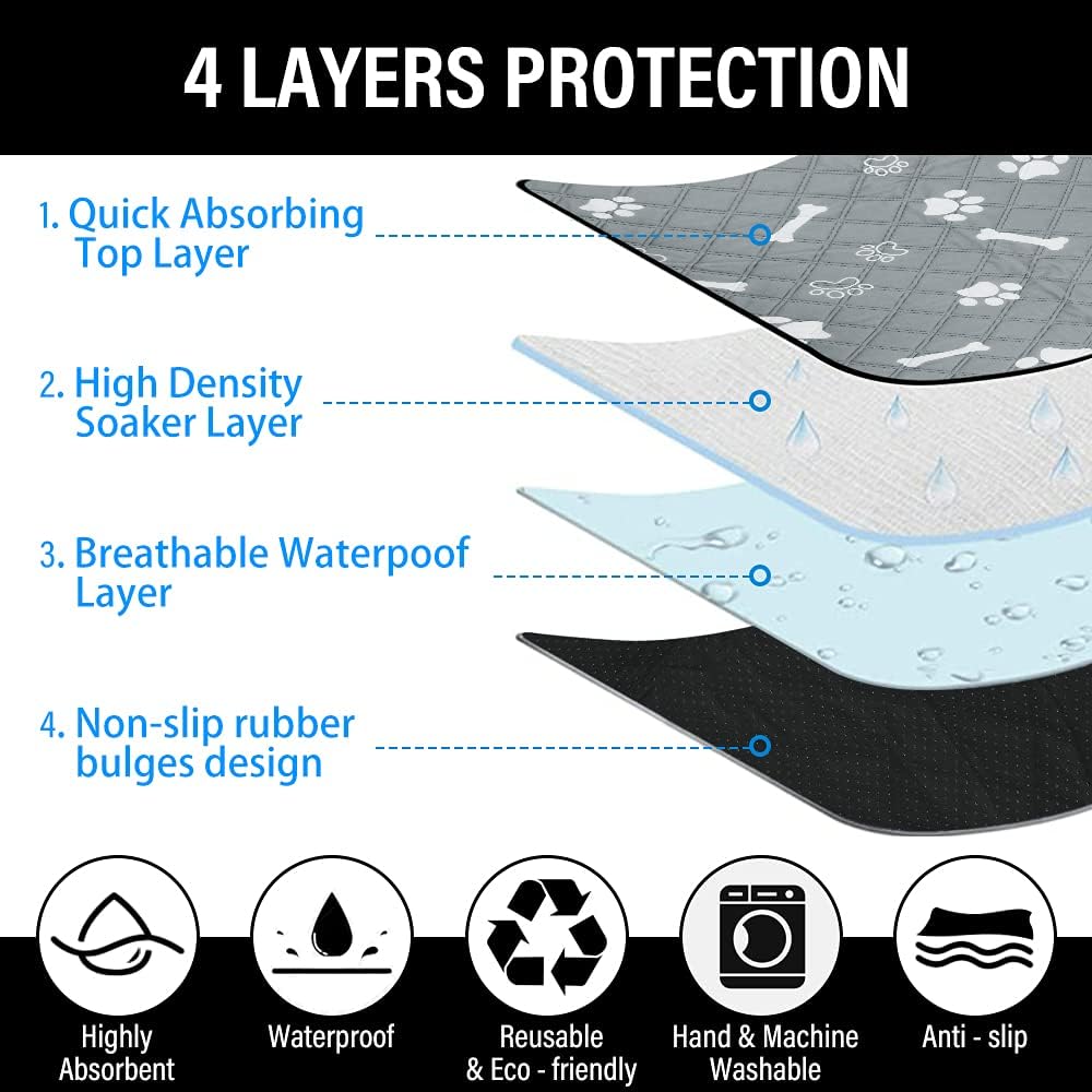 وسادات تبول للكلاب قابلة للغسل من بلوتوس، عبوتان، وسادات للكلاب غير قابلة للانزلاق ذات امتصاص ثقيل، وسادات تدريب قابلة لإعادة الاستخدام، بساط مقاوم للماء للإنجاب، قفص اللعب، القفص، بيت الكلب وفي الهواء الطلق، 60.96 سم × 45.72 سم