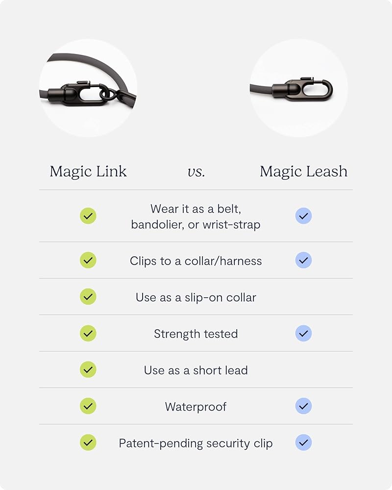 • احصل على الملاءمة المثالية: مقود Magic Link الخاص بنا، المصنوع من سلك مصقول قوي صناعيًا وأجزاء صلبة من الألومنيوم، يأتي بحجمين: XS/S قابل للتعديل إلى 40-70 بوصة (الأفضل للكلاب أقل من 20 رطلاً) وM/L قابل للتعديل إلى 45 -80 بوصة (الأفضل للكلاب التي يزيد وزنها عن 20 رطلاً).