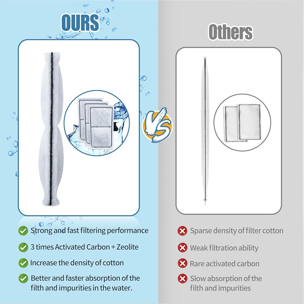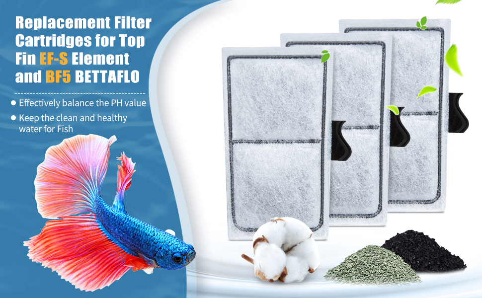 • استبدال طويل الأمد لفلتر حوض السمك - من أجل صحة الأسماك والمخلوقات الأخرى، نقترح تغيير خرطوشة الفلتر كل 2-4 أسابيع للحفاظ على مصدر المياه صحيًا ونظيفًا في جميع الأوقات. يمتص قطن الفلتر الشوائب في حوض السمك ويقوم بترشيحها بالكامل.
