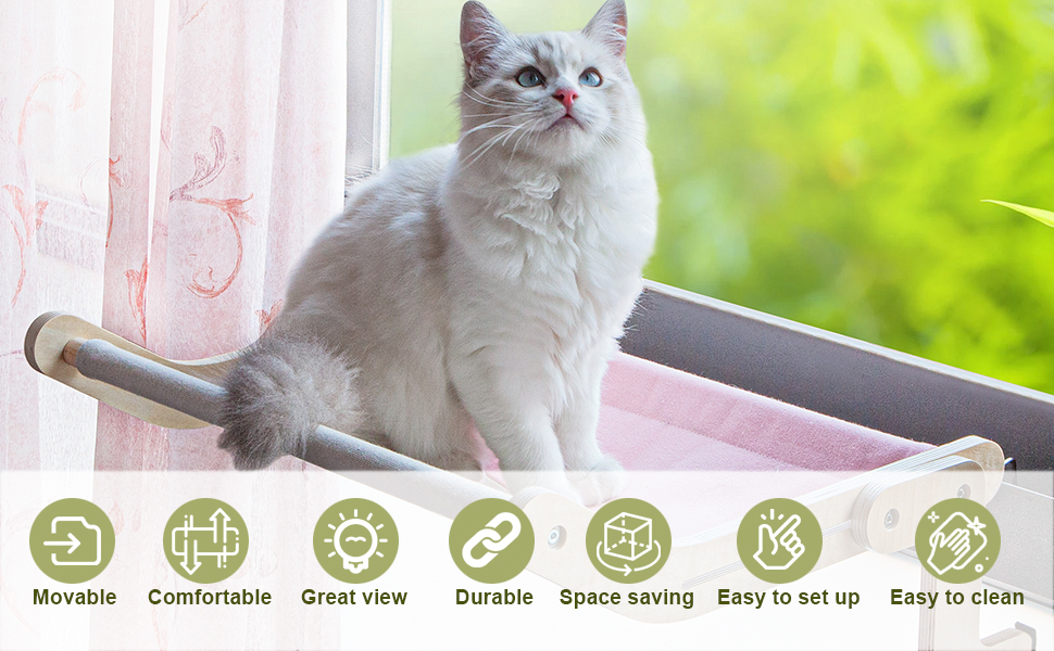 【سهلة التنظيف وتعزيز المشاعر】يمكن لأرجوحة القطط الخاصة بنا التحرك بسهولة من مشهد إلى آخر دون تفكيك، ويمكن تنظيف القماش، مما يوفر مساحة استراحة نظيفة للحيوانات الأليفة. عند استخدامها على حافة النافذة، يمكن للقطط الاستمتاع بالمناظر الطبيعية والطيور خارج النافذة، وكذلك الاستمتاع بأشعة الشمس. عند استخدامه بجانب السرير، يمكن النوم مع المخرج والاستيقاظ معًا، مما يعزز العلاقة بين القطة وصاحبها.