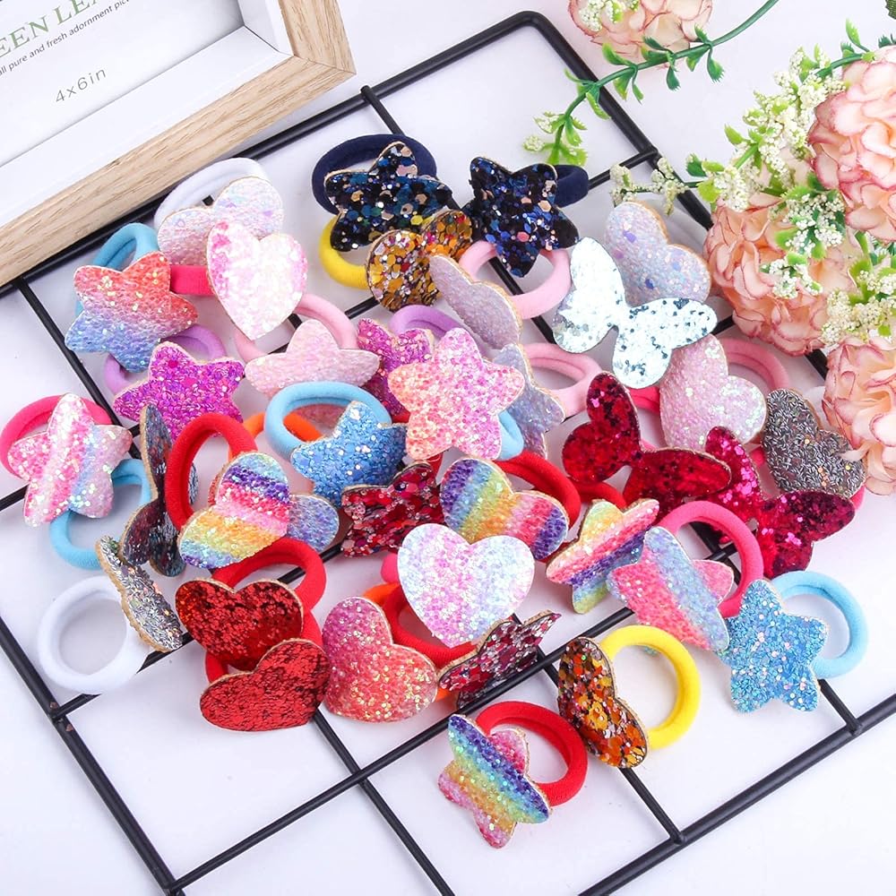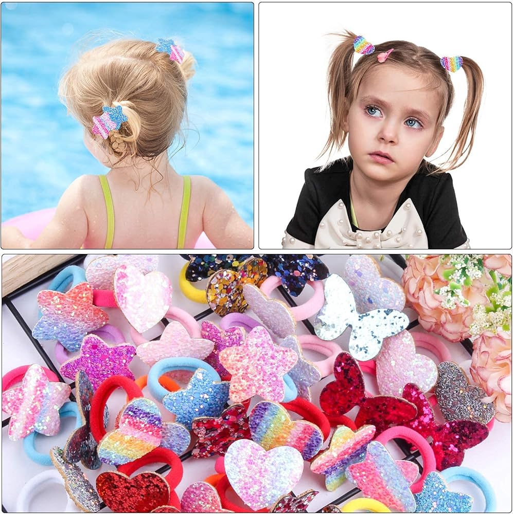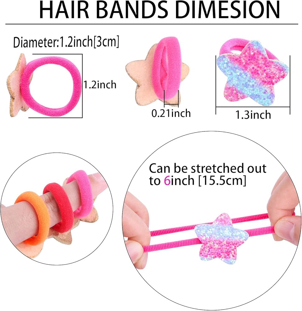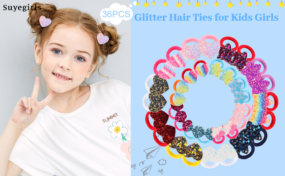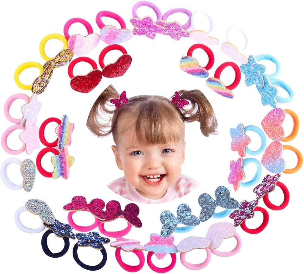 ☀ 36 قطعة حامل ذيل الحصان للفتيات الصغيرات، ربطات شعر لطيفة ولامعة للأطفال على شكل قلب ونجمة وفراشة ورسوم كرتونية ملونة للحيوانات الأليفة في أزواج من ربطات الشعر الصغيرة☀