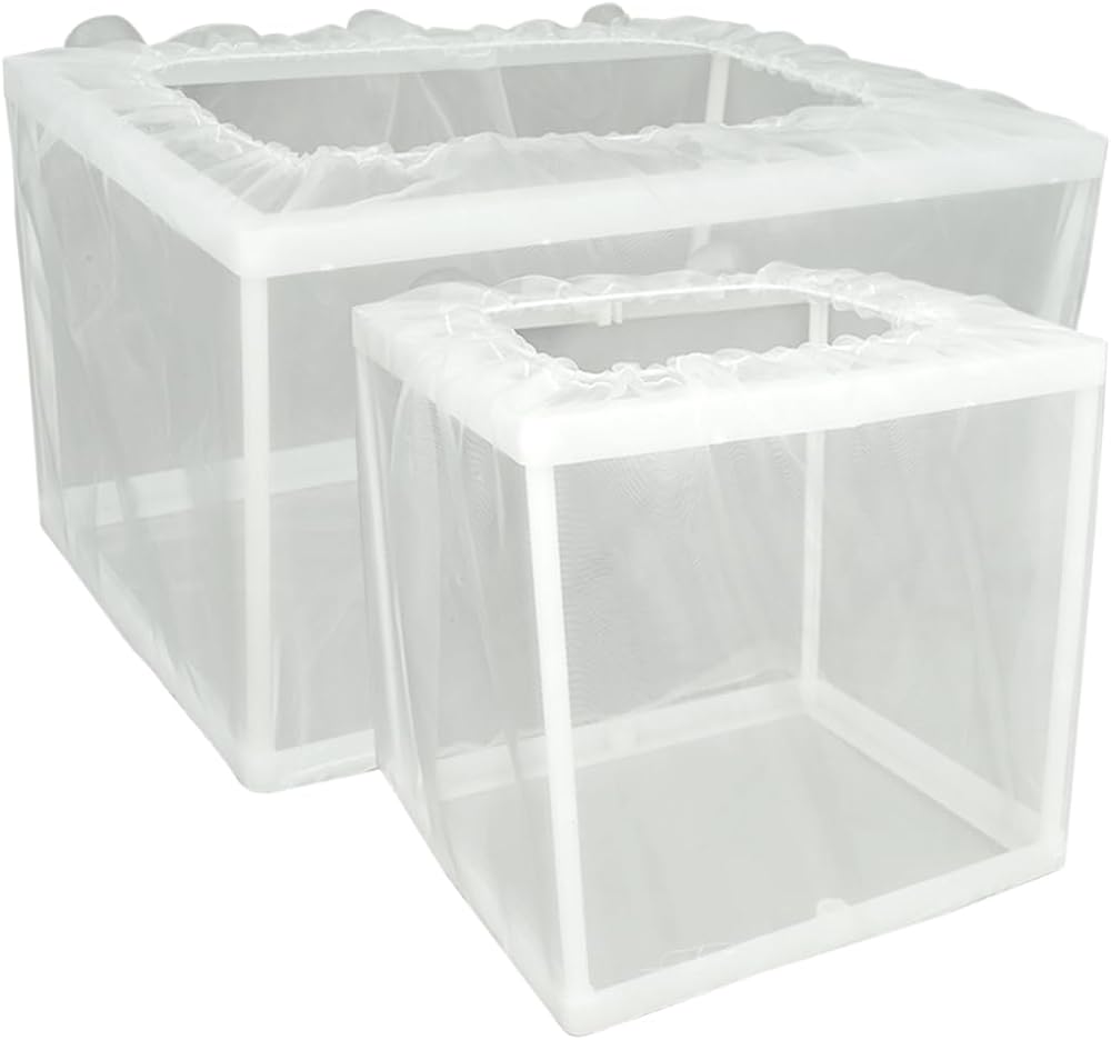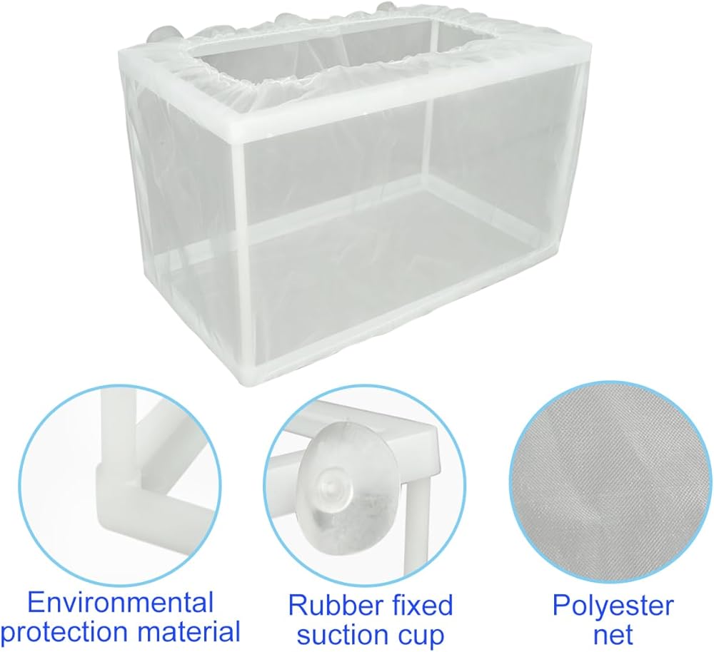 【حماية القلي】 تتمثل إحدى المزايا الأساسية لاستخدام صندوق تربية الأسماك في أنه يحمي المقلاة من أن تأكلها الأسماك البالغة في نفس الحوض. تسمح المادة الشبكية للمربي بتدفق الماء بحرية مع الحفاظ على المقلاة آمنة من الحيوانات المفترسة