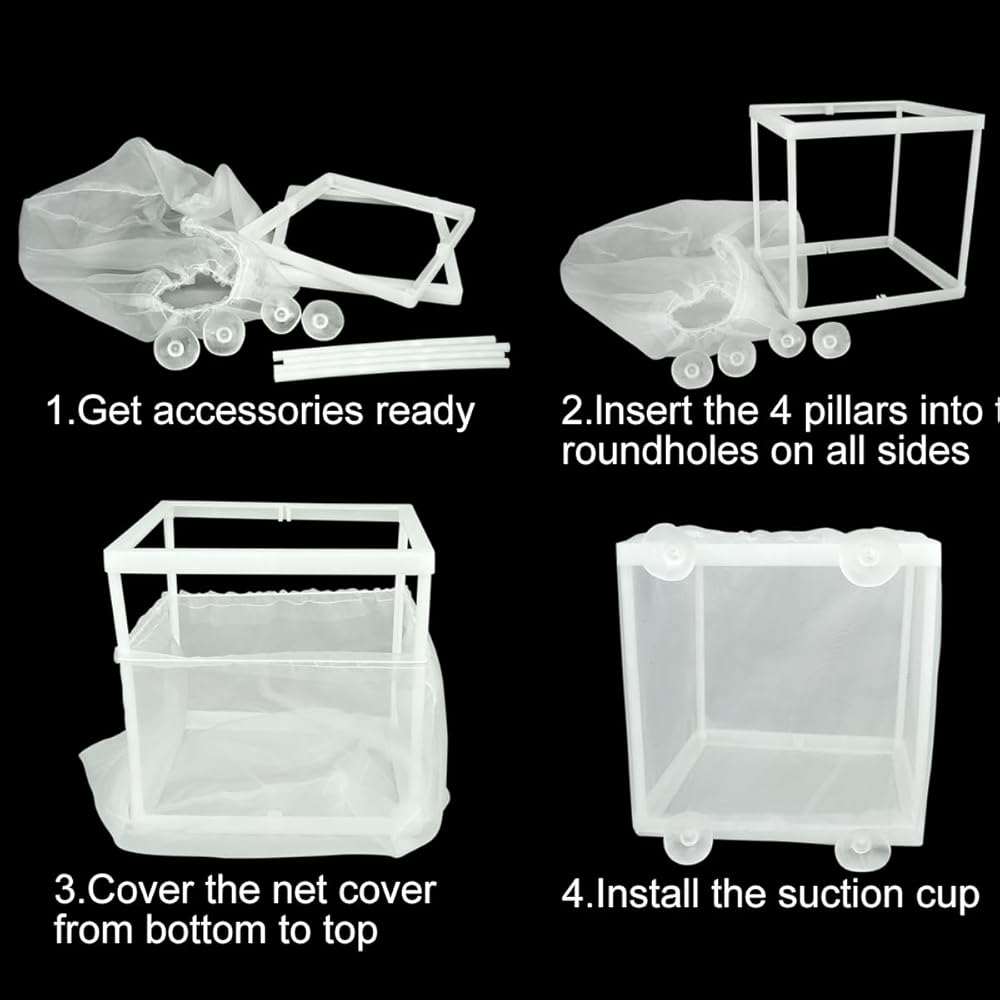 【سهلة الصيانة】عادة ما تكون شبكة تربية الأسماك سهلة التنظيف والصيانة. يمكن إزالتها بسهولة من الخزان وتنظيفها ووضعها مرة أخرى في مكانها دون تعطيل عملية التكاثر
