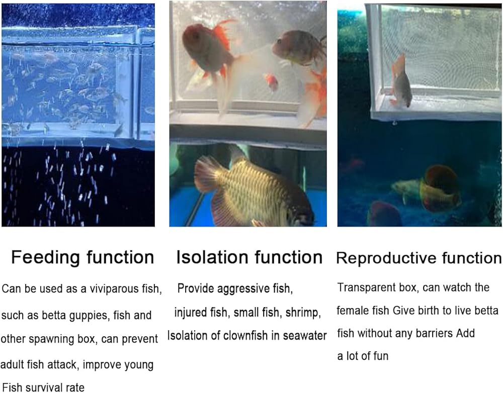【التحكم في التكاثر】يسمح صندوق تربية الأسماك بالتحكم في التكاثر عن طريق إبقاء الأسماك البالغة منفصلة عن القلي. هذا مفيد بشكل خاص عند تربية أنواع معينة من الأسماك أو محاولة التحكم في عدد القلي في الخزان