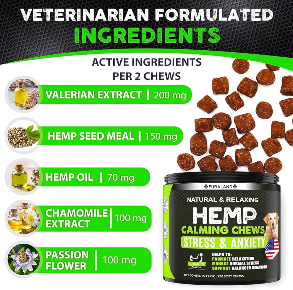 Hemp Emging Chews للكلاب مع القلق والإجهاد - 170 علاجات تهدئة الكلاب - العواصف ، النباح ، الفصل - جذر فاليريان - الميلاتونين - زيت القنب - تخفيف القلق من القلق - صنع في الولايات المتحدة الأمريكية | مضغ ناعم