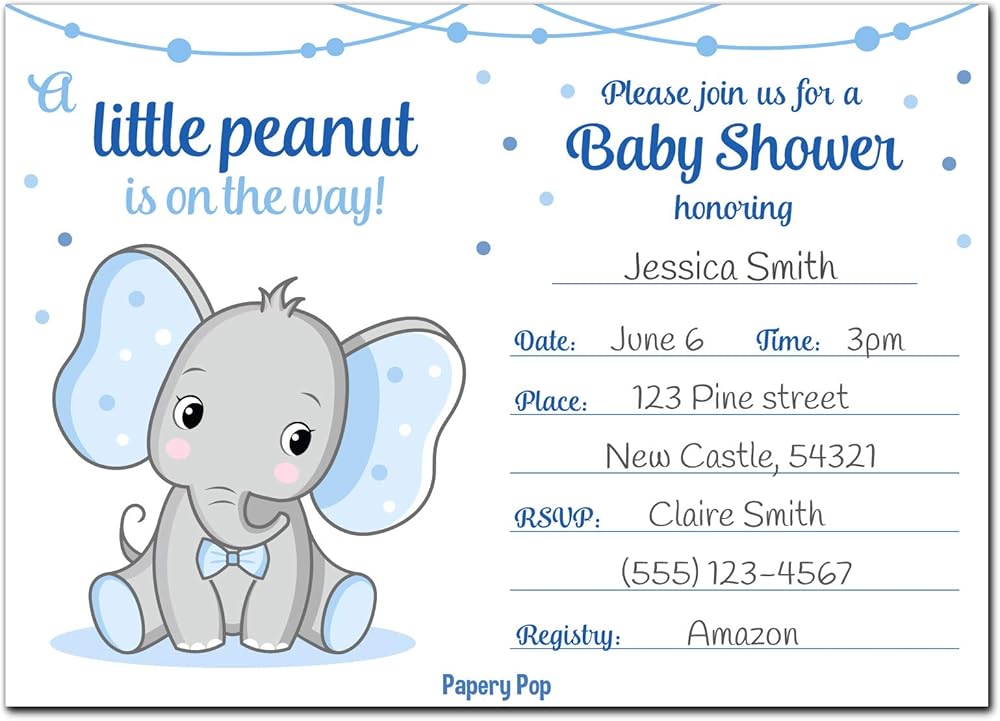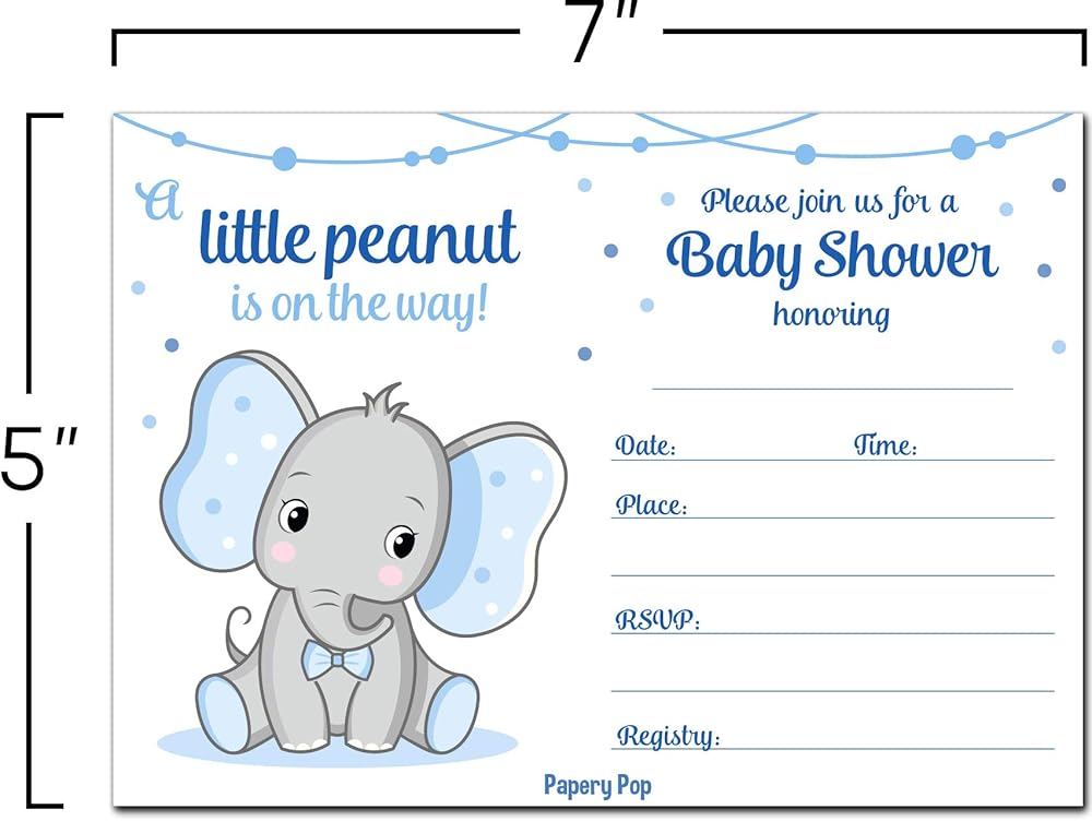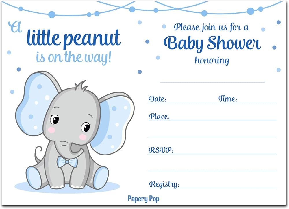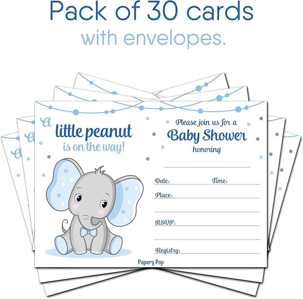 30 دعوة لحفل استقبال المولود للأولاد مع أظرف (30 حزمة) - الفيل - بطاقات الدعوة لحفل استقبال المولود الجديد - تناسب بشكل مثالي مع ديكورات ولوازم استحمام الطفل الزرقاء للأولاد