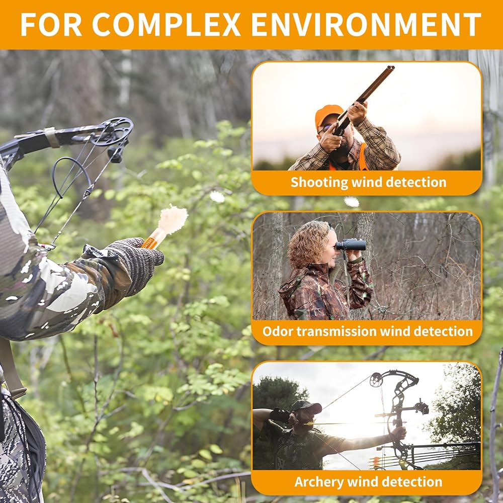 Reads Wind and Thermals - Feather duck down can show invisible downwind scent path. The Wind Indicator operates silently, without making any noise during use; compared to powder type wind indicators, our hunting accessories for men & women does not produce any smell or affect the air and will not be detected by the prey. This is crucial for maintaining stealth and not alerting the game or other outdoor creatures to your presence