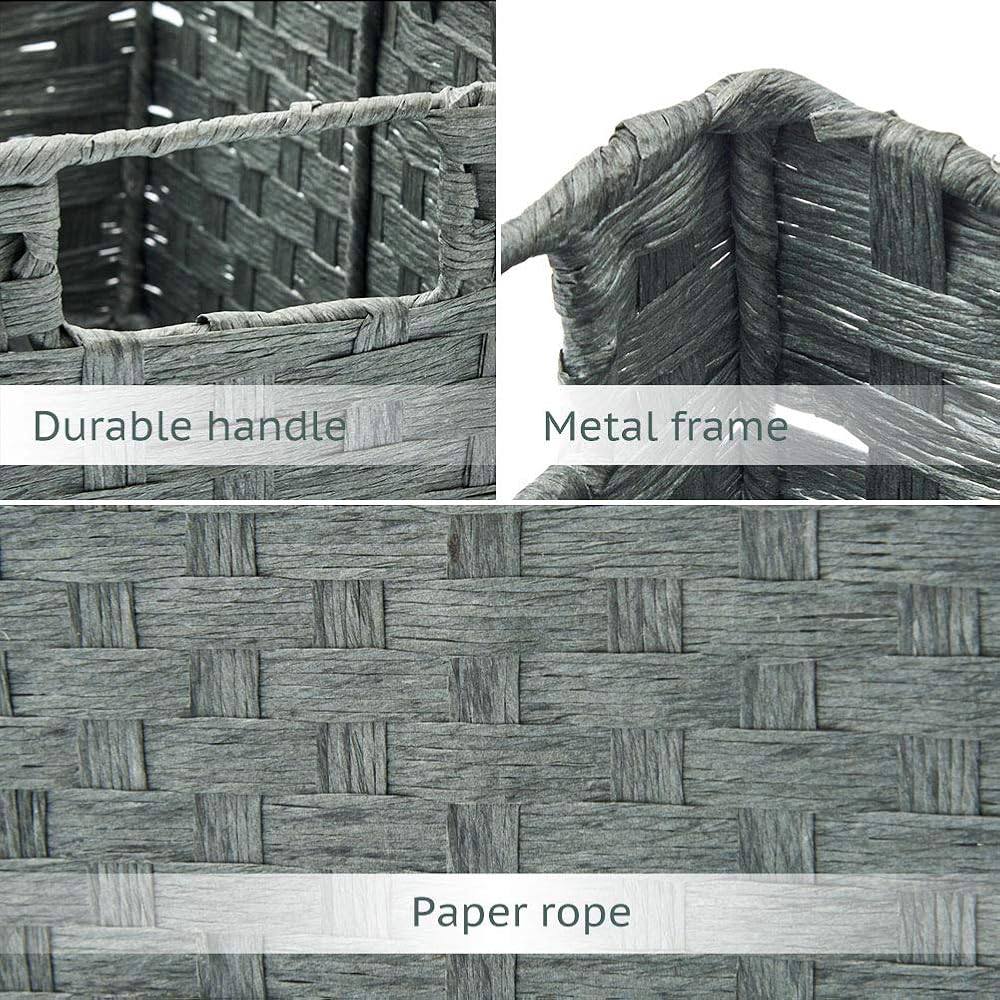 [جذاب ومزخرف] تصميم مستطيل أنيق وبسيط بلون رمادي محايد لتكملة أو مطابقة ديكور الغرفة وغرفة الأطفال. مصنوعة من حبل ورقي مقاوم وإطار معدني قوي بتصميم سلة منسوجة عصرية تبدو رائعة في أي غرفة.