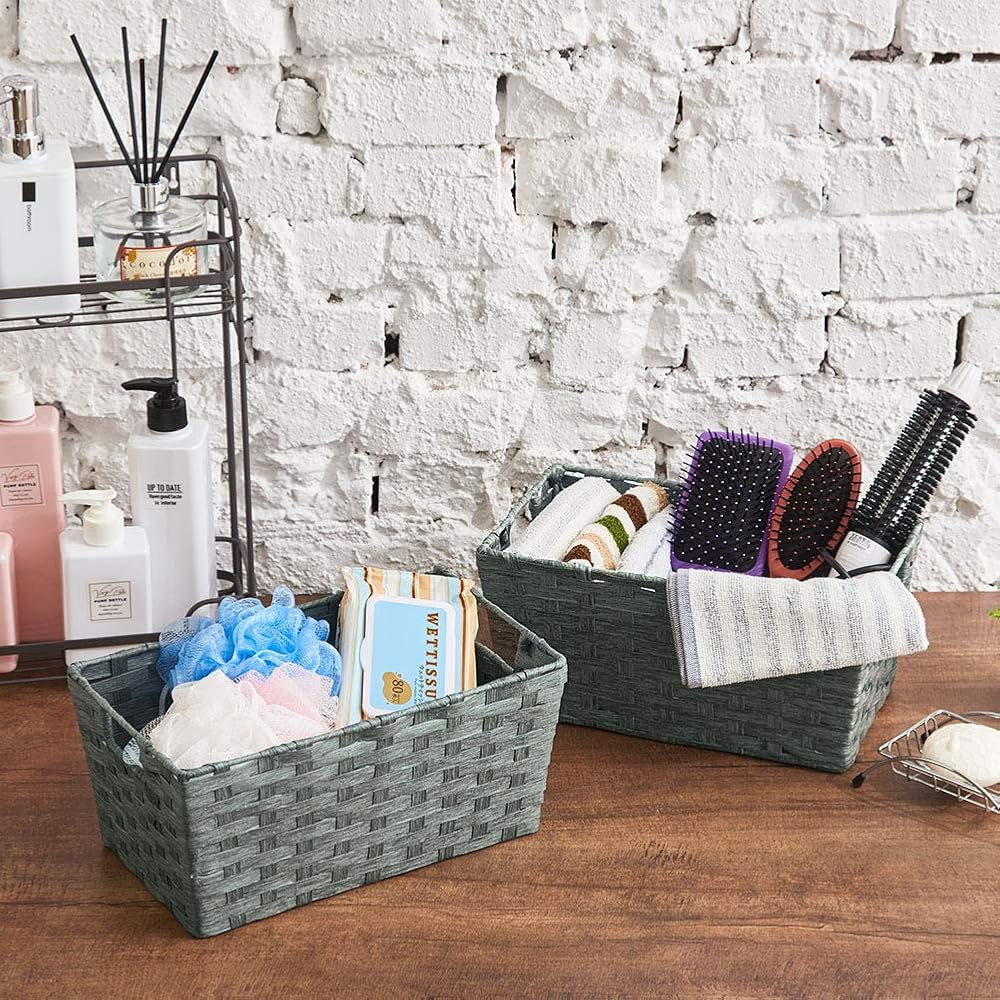 ايزوواير توفر سلال التخزين والصناديق والصناديق حلاً بسيطًا وعصريًا لاحتياجات المكتب أو المنزل أو مساحة النوم والتخزين. هذه السلال الورقية المستطيلة الجذابة منسوجة بمقابض لتصميم بسيط ومتين. طريقة متعددة الأغراض ومتعددة الاستخدامات لتخزين الأشياء وإزالة الفوضى، أو استخدمها لتزيين منزلك وغرفك. يمكنك تنظيم الغرف أو الأرفف أو خزانة المؤن أو الخزانات بسهولة.