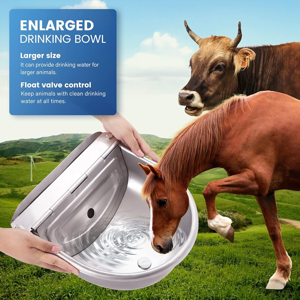 • 1.18 GALLON LARGE CAPACITY:Automatic animal water bowl large than other type water bowl helps to reduce water splashing and minimize mess, keeping your floors cleaner and drier.It suitable for horse, cow sheep, pig,dogs, chicken drinking water.
