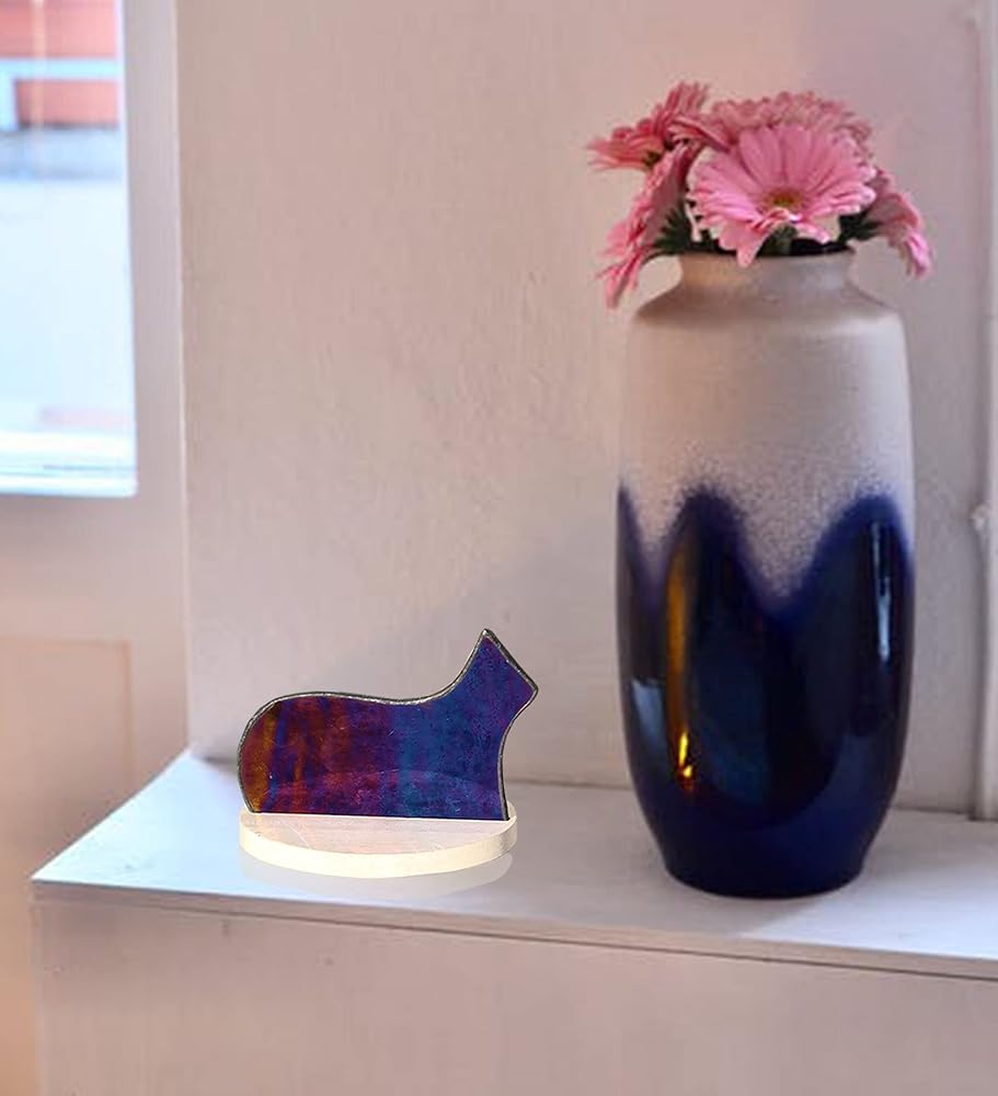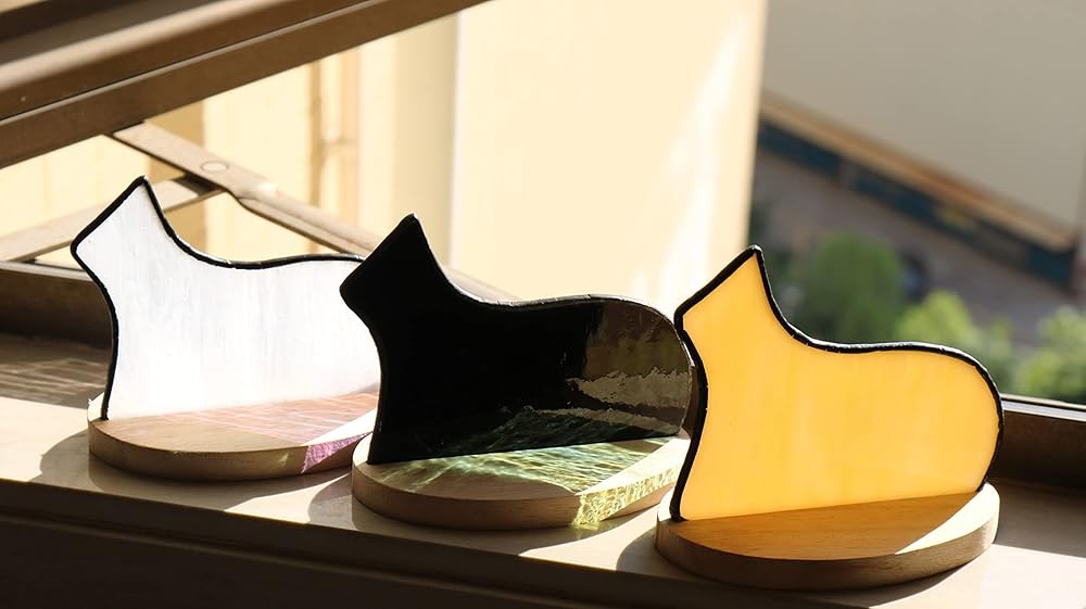 Black cat figurine can be as a cat decor for cat lovers gifts,cat lovers gifts for women,funny cat gifts,cat gifts for cat lovers,pet lovers gifts,cat themed gifts for women,also can be mother's day gifts, birthday gifts, Christmas Decor Gifts, Teacher's Day Gifts, Valentine's Day Gifts and Housewarming Decor Gifts Specification: Subject: Black Cat Decor Figurine Material: Stained Glass Style: Black Cat Color : Black Dimensions: 4""x3"" Stained Glass: These handcrafted stained glass Cat Stained Glass Figurine are made with pale Black glass. When made from sunlight and opaque glass sheets, it allows the shadow of the shape and texture of the glass to shine on other surfaces, so you can get colorful sunlight on the window sill or desk. Note: 1. Hand-cut stained glass Cat, each piece of the pattern is unique, because it is handmade, so there may be a little defect. 2. If the light is different, the product will be a little different. Those who mind will consider it carefully. 3. Glass is fragile,pls take care of use it. Small parts not for children under 5 years old. It's normal to have bubbles in stained glass.