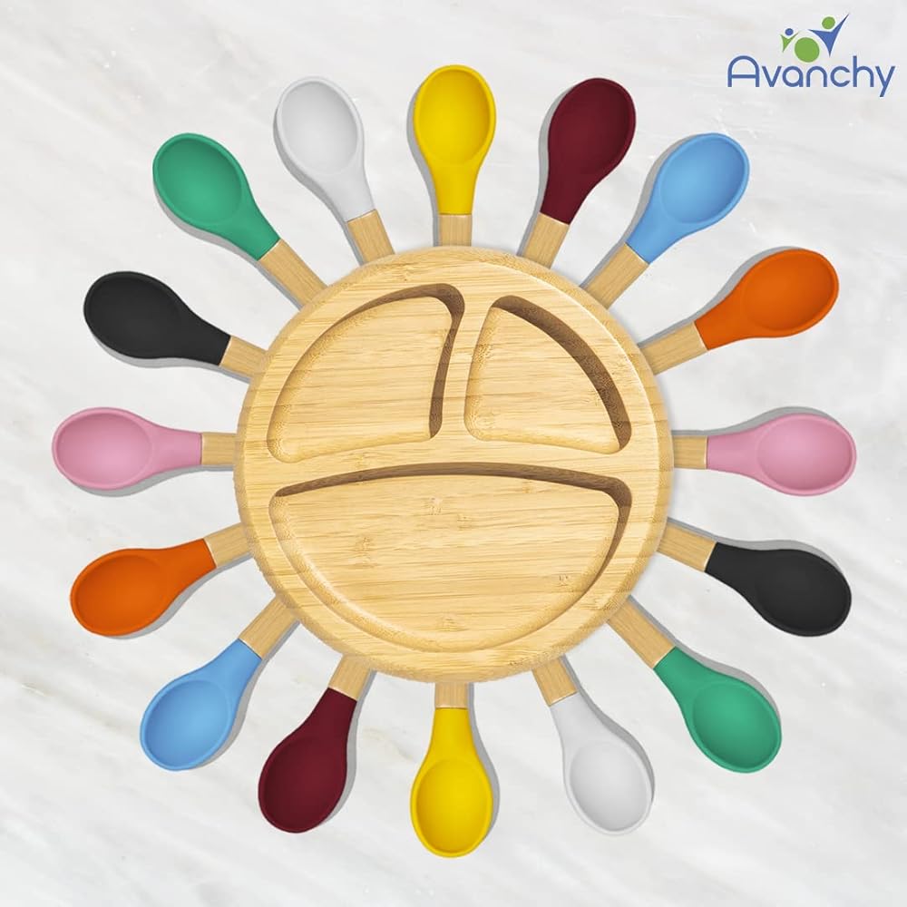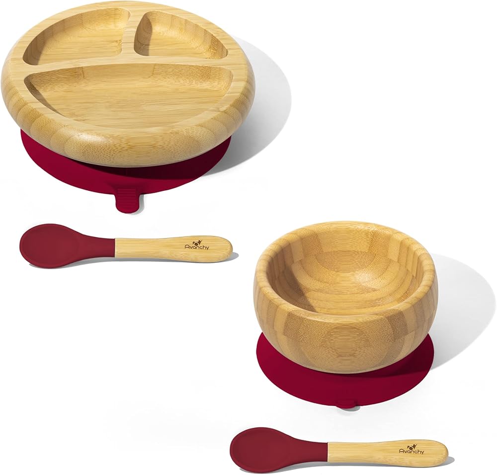 هدايا مافين: مجموعة هدايا إطعام الأطفال من أفانشي بيبي - وعاء شفط بامبو ستاي بوت مع ملعقة وماجوتا وخيزران مع ملعقة وماجنتا - للأطفال بعمر 6 أشهر وما فوق.