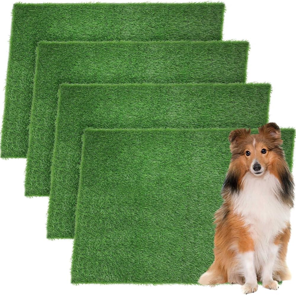 Amylove 4 Pcs Pee Pads for Dogs 18 x 28'' Fake Grass for Dogs Washable Dog Pee Grass Dog Grass Pad Puppy Grass Artificial Grass Rug Turf for Pet Training with Drainage Hole Outdoor Indoor Garden