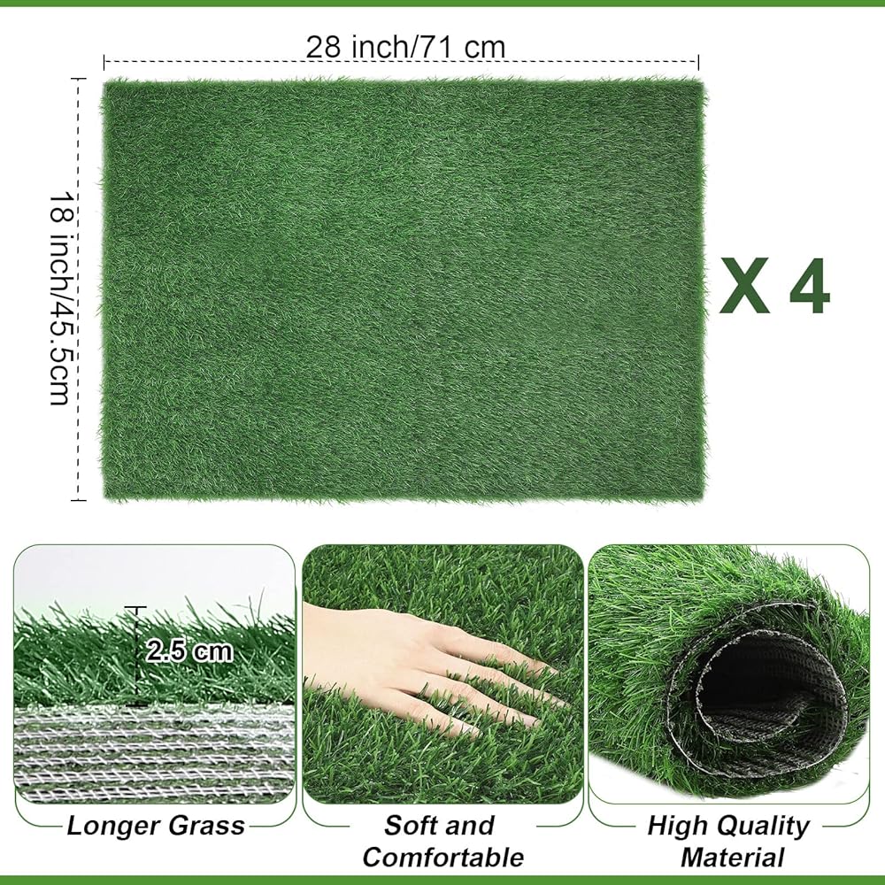 Realistic Grass Pads: the package includes 4 potty pads for dogs, which look like real grass, the size is about 18 x 28 inches/ 45.5 x 71 cm, there are enough quantities to meet your pet's needs and replacements