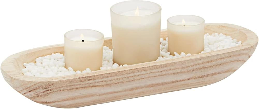 اوعية عجين خشبية مصنوعة يدويا للديكور، قطعة مركزية بيضاوية من خشب باولونيا (17 × 6 × 3 انش)