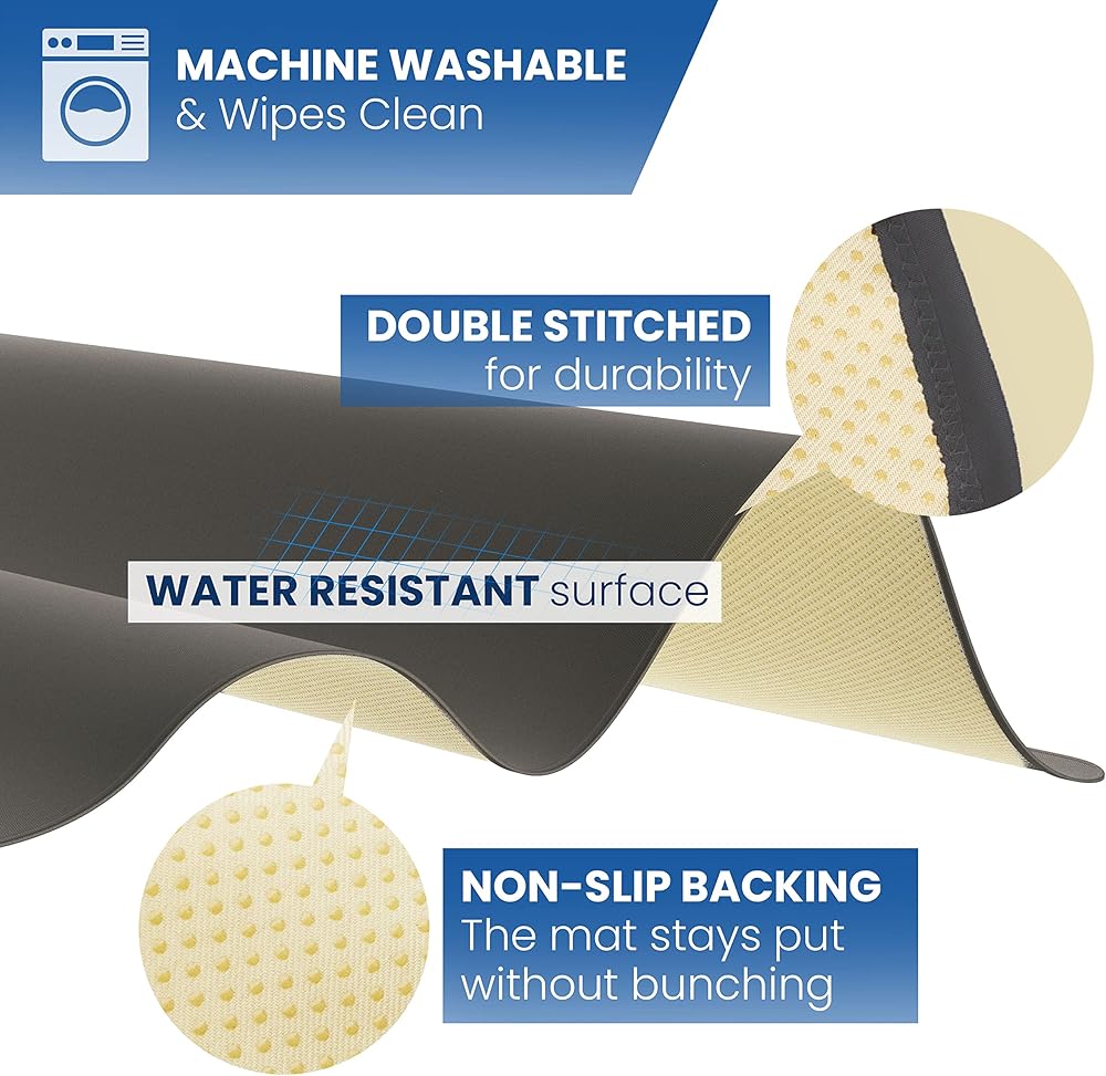 • Non-slip: Thousands of Anti-slip grippers on the backing keeps the water resistant splat mat mat in place and prevents it from bunching under your hardwood floor.