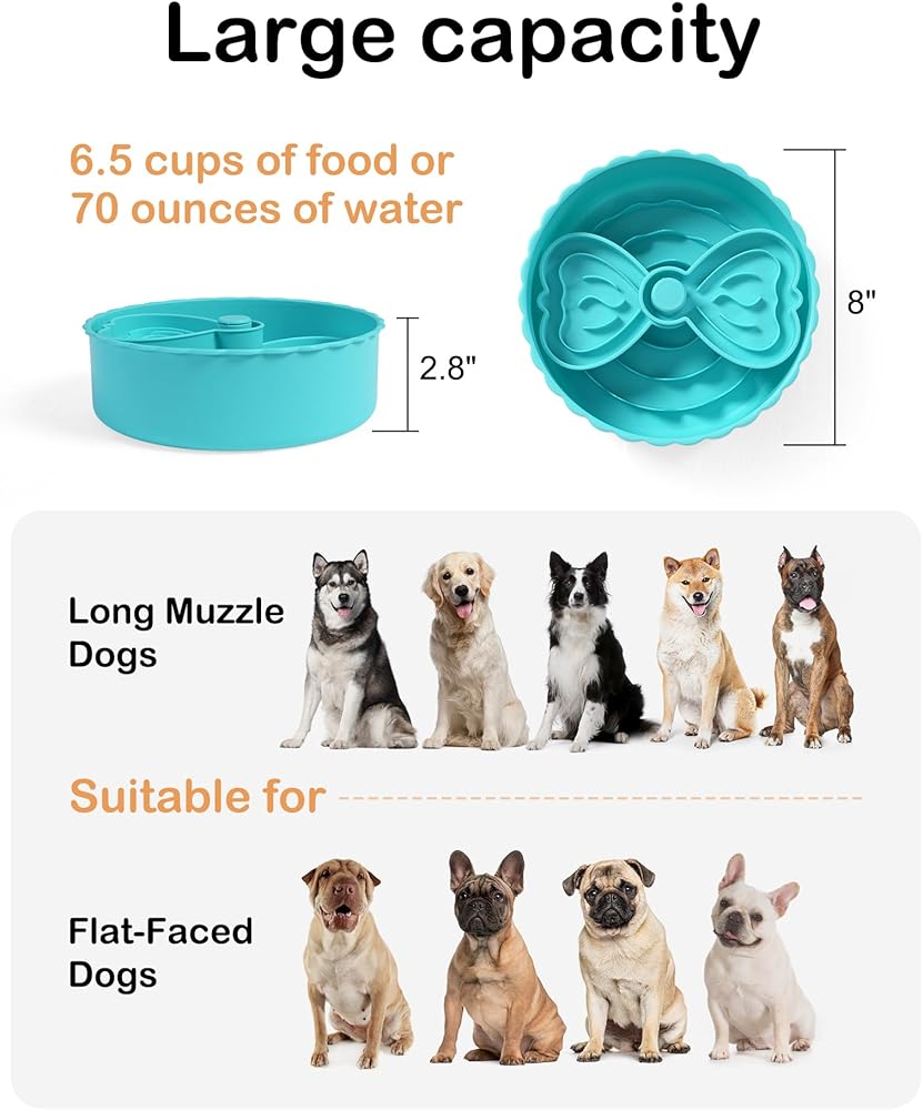 تناسب جميع سلالات الكلاب: تخدم ألغاز الكلاب Sted أغراض جميع سلالات الكلاب. بقطر 8.2 بوصة وعمق 2.8 بوصة، فهو مناسب تمامًا لكل من الكلاب ذات الكمامة الطويلة والكلاب ذات الوجه المسطح. سواء كان لديك كلب صغير الحجم أو كبير الحجم، فإن أوعية التغذية البطيئة الخاصة بنا توفر لهم تجربة تناول طعام ممتعة وجذابة.