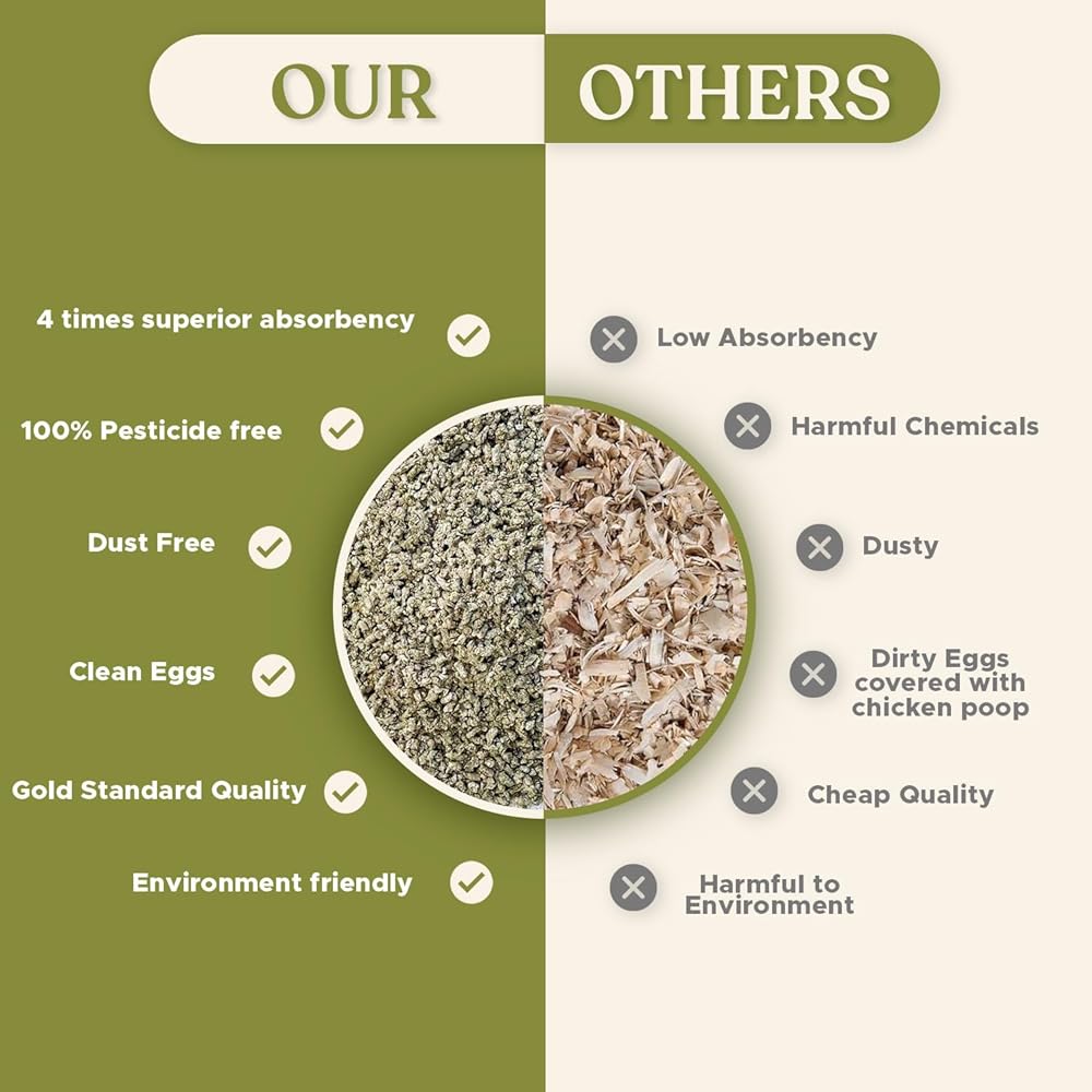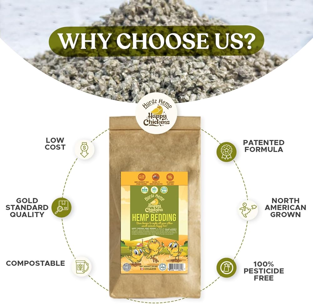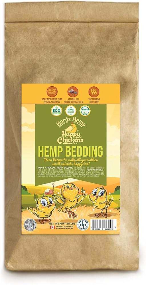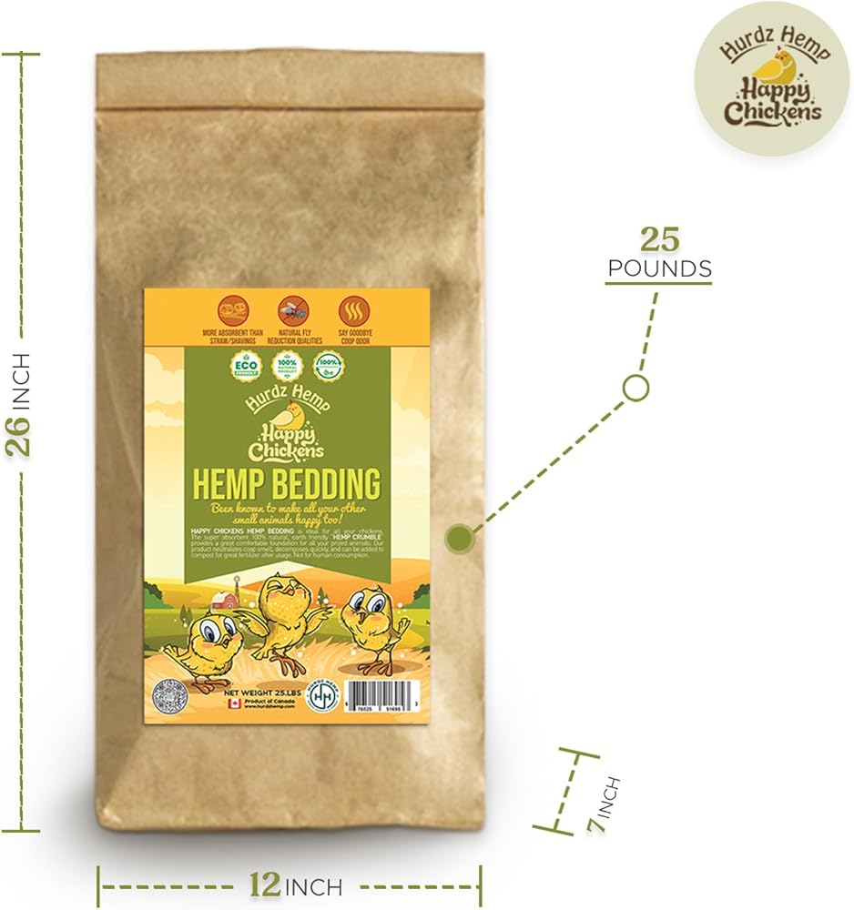 فراش HURDZ HEMP لحظيرة الدجاج (25 رطلاً)، تركيبة دجاج مفتتة فريدة من نوعها - فراش دجاج فائق الامتصاص ومتين مصنوع من ألياف طبيعية 100% قابلة للتحلل الحيوي، فراش دجاج للتحكم في الرائحة لقفص الدجاج