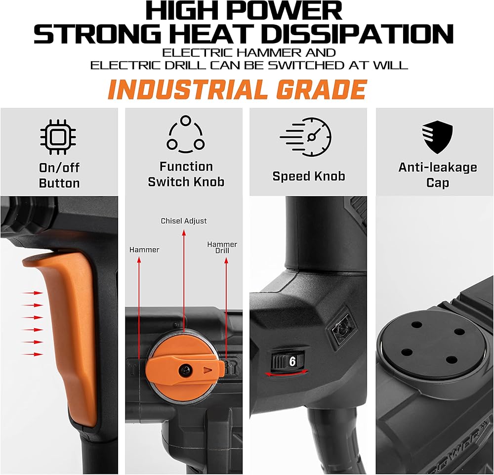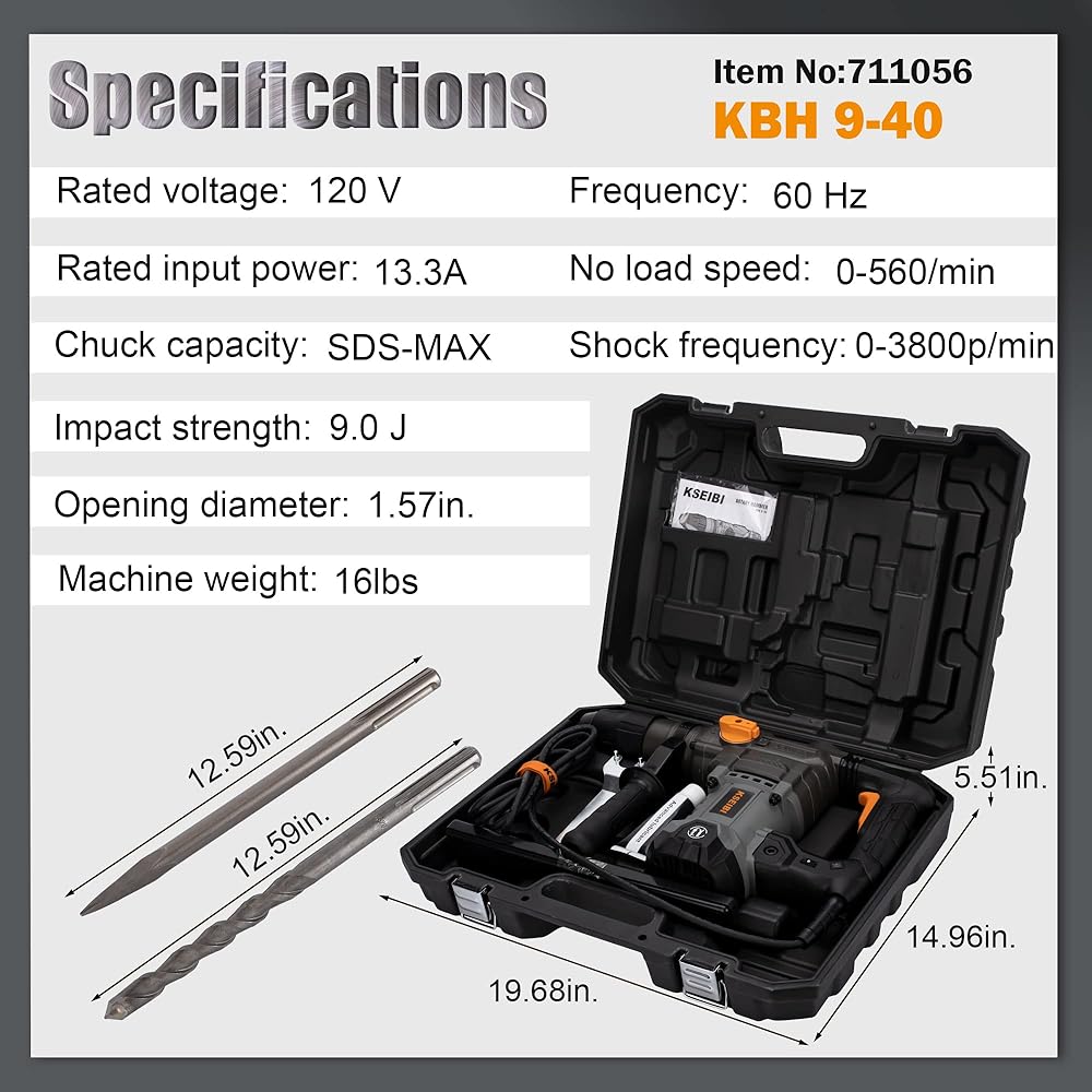 إن مثقاب المطرقة كسيبي 711056 هو مثقاب مطرقي قوي SDS Max مصمم لاختراق أصعب المواد بسهولة. يمكنها حفر ما يصل إلى 1-5/8 انش في البناء وتتميز بـ 3 وظائف - الحفر والإزميل لزيادة تعدد الاستخدامات. مقبض مضاد للاهتزاز يجعله أكثر راحة في الاستخدام.