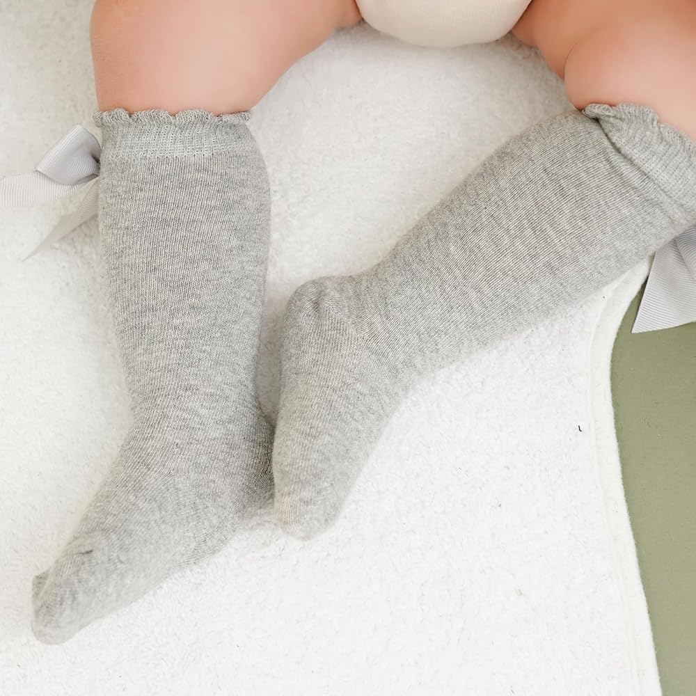 The baby knee-high socks have good performance on elastic and resilience thanks to its delicate knit fabric. If you received different long socks in one package, please don't worry! Simply stretching the socks horizontally will return the socks to their original length. See! It changed back! Baby socks' good flexibility ensures that the baby will not be tight when wearing them on the leg.