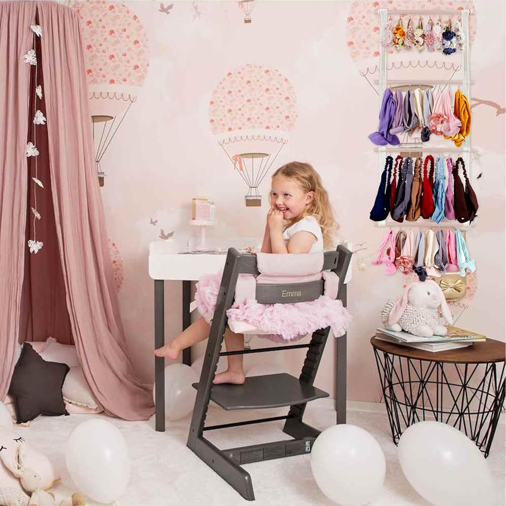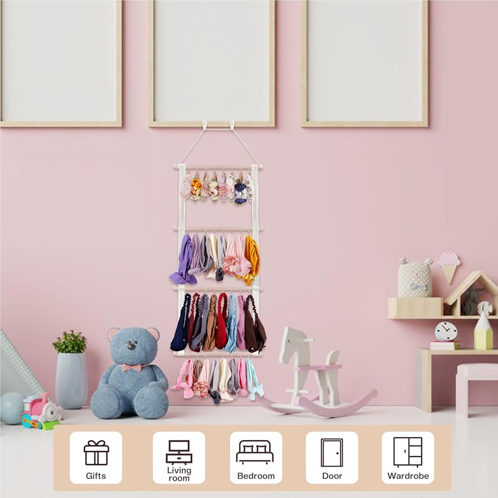 حامل فيونكة شعر من شيربول للفتيات، منظم عصابة الرأس مع 32 خطافًا، منظمة مشابك شعر معلقة لجدار غرفة ديكور الحضانة