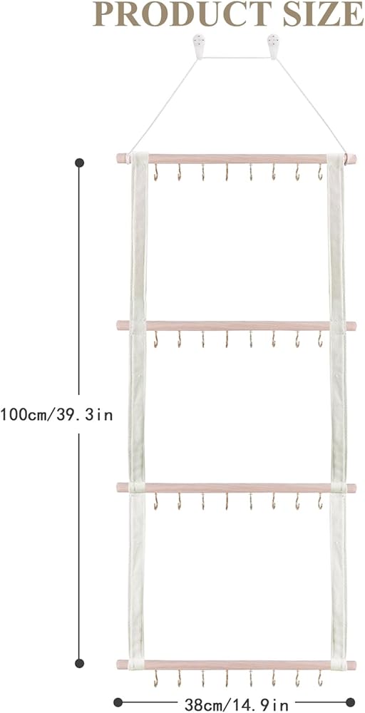 • مادة فاخرة - منظم عصابات الرأس الكبير مصنوع يدويًا من حبل قطني ناعم ولكن منسوج بإحكام، وخشب الصنوبر الصلب المتين وليس من السهل تشويهه أو تشققه. الخطافات المعدنية متباعدة بشكل متساوٍ لتجنب الفوضى. تتحمل الاستخدام اليومي بشكل رائع.