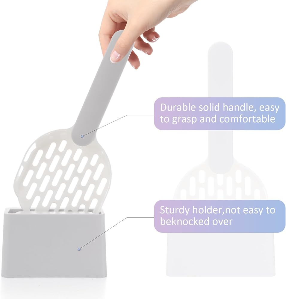• 🐾[مغرفة فضلات القطط مع حامل] - مغرفة فضلات القطط المزودة بحامل هي أفضل شريك لصندوق فضلات القطط الكبير الخاص بنا، ولن تكون هناك حاجة إلى وضعها على الحائط أو الجلوس فوق صندوق الفضلات. لم تعد تقلق بشأن رؤية الضيوف لمغرفة فضلات القطط المستخدمة وإبقائها في متناول اليد، فهي تعمل مع أي فضلات قابلة للمغرفة، بما في ذلك فضلات الطين المتكتلة.