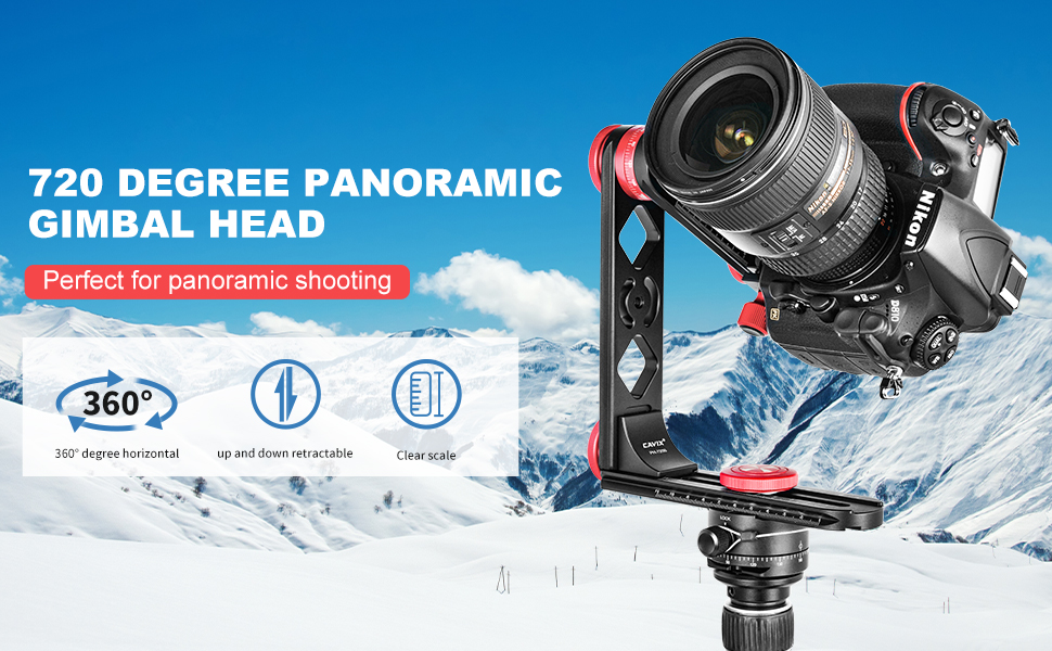 كافيكس PH-720B رأس جيمبال مدمج مع مشبك QR ولوحة ، دوار فهرسة للصور البانورامية 360 × 360 درجة
