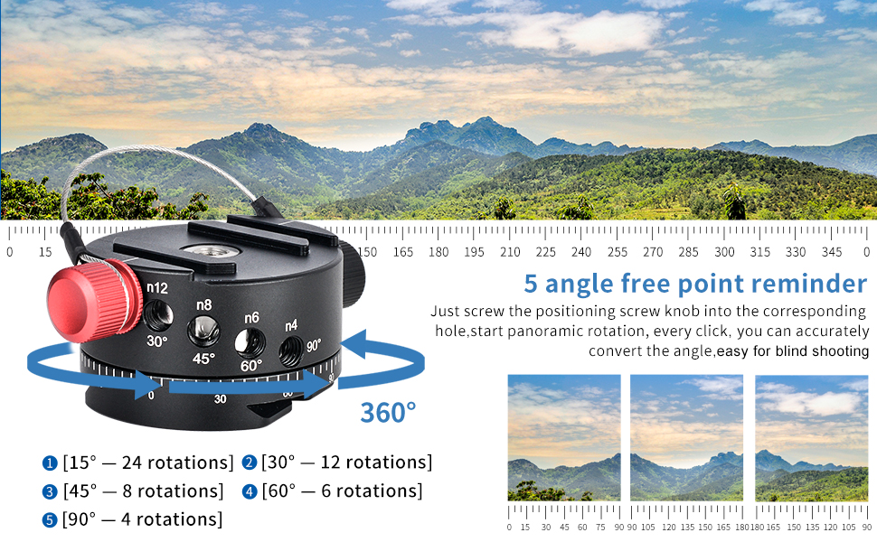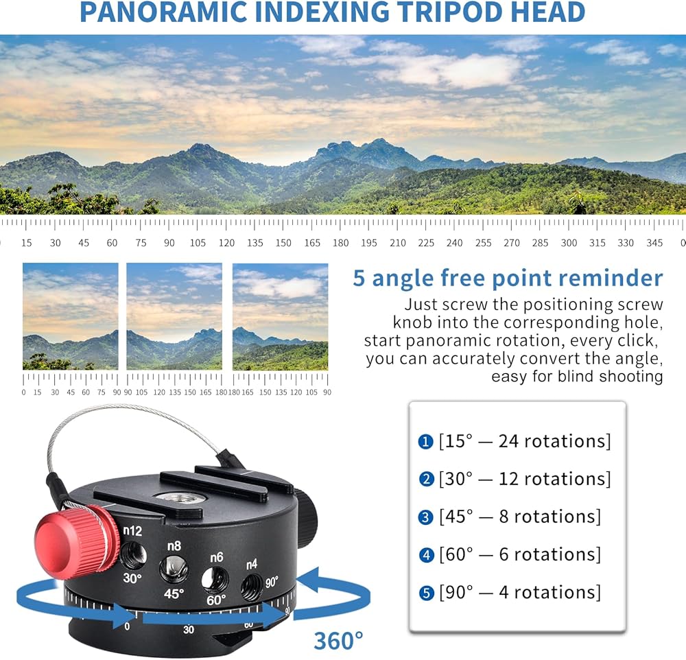 ● يحتوي جهاز الفهرسة الدوار على مؤشرات بدء وإيقاف محفورة بالليزر على فترات 5 درجات مما يجعل من السهل التقاط الكمية المناسبة من الصور دون التقاط لقطات إضافية غير ضرورية.
