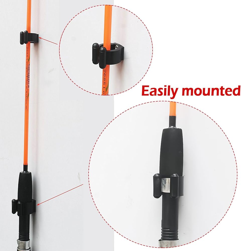 هذه المشابك هي 16-24 ملم القطر الداخلي وتنتشر مفتوحة من أجل دخول عمود الصيد الخاص بك ثم إغلاق الظهر لتثبيت عمود الصيد الخاص بك بإحكام. يتم تضمين البراغي مع هذه المشابك هناك فتحتان صغيرتان في الوسط الداخلي حيث يدخل مسمار التثبيت ويثبت في رف قصبة الصيد.