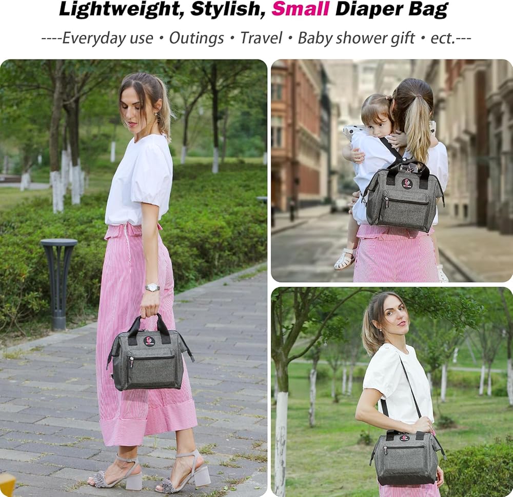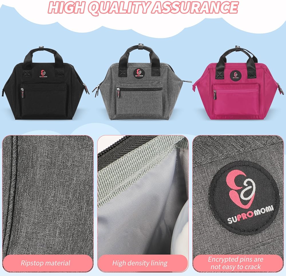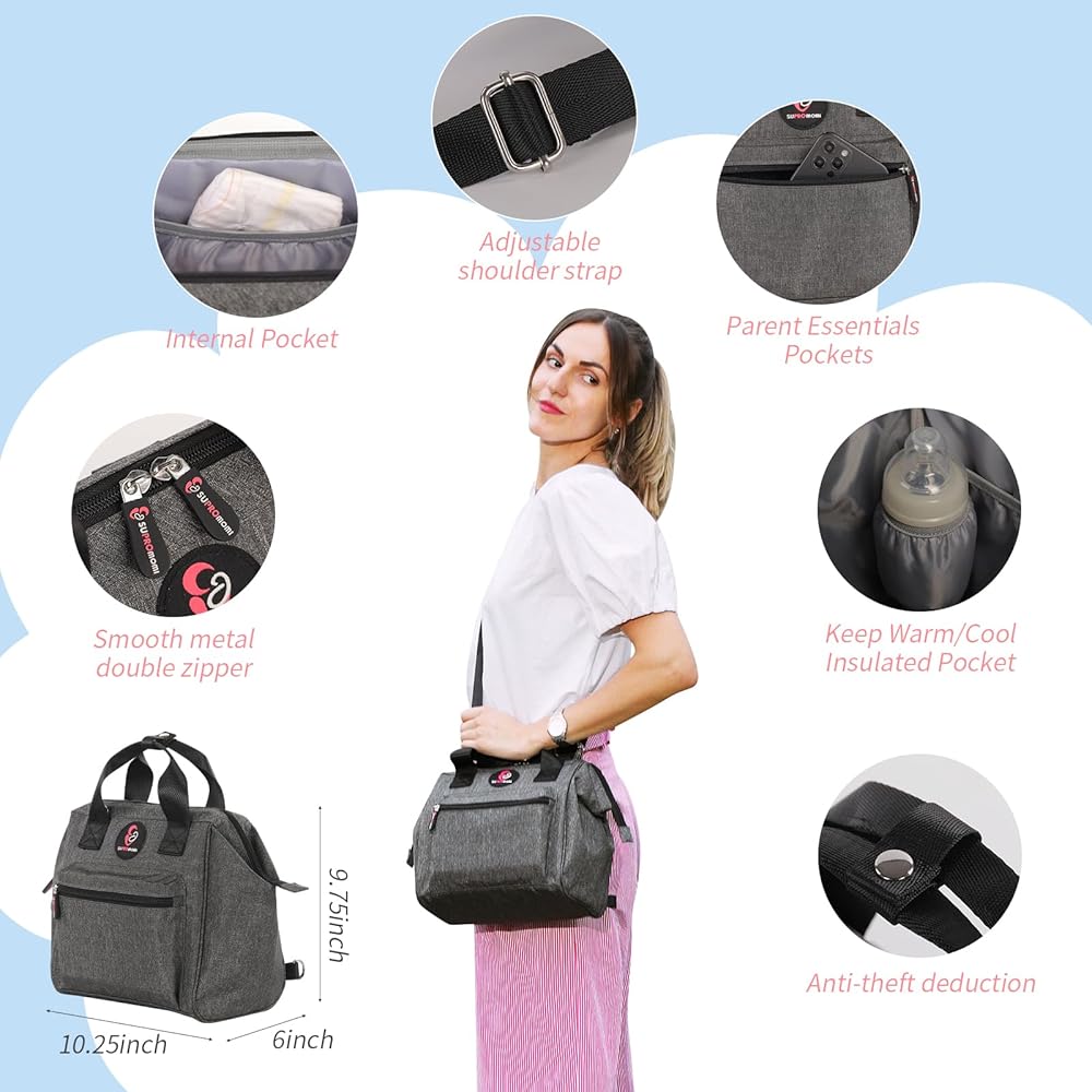 حقيبة حفاضات صغيرة بسيطة وعملية: سعة حوالي 10 لتر مناسبة للأمهات في الرحلات القصيرة، SUPROMOMI قم بإعداد حقيبة الحفاضات الصغيرة البسيطة وخفيفة الوزن للأمهات لمساعدتهن على السفر بسهولة في أي وقت خارج المنزل، فتحة واسعة، تصميم تمديد مسطح، سهلة الحمل تنظيم وأخذ الأشياء، جيب معزول للحفاظ على برودة الحليب، مناسب لحقيبة الحفاضات النسائية، حقيبة الأم خفيفة الوزن، سهلة الحمل، يمكن للجدة أيضًا استخدام حقيبة الحفاضات بسهولة.