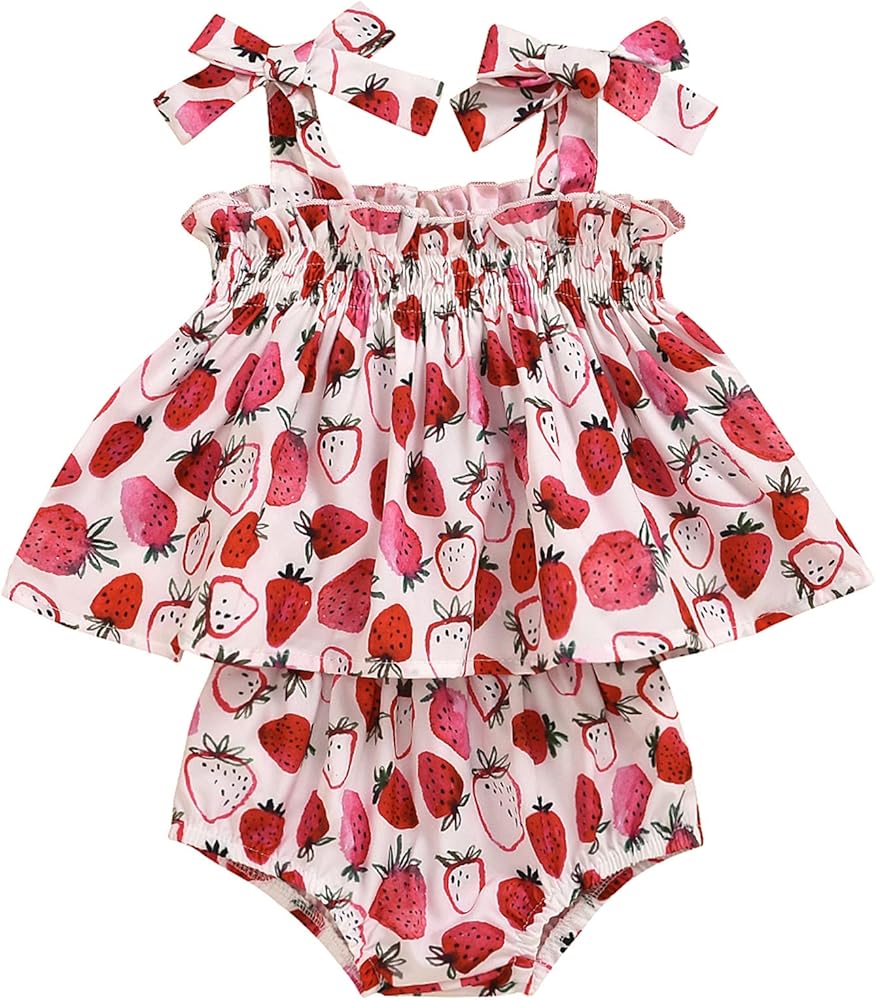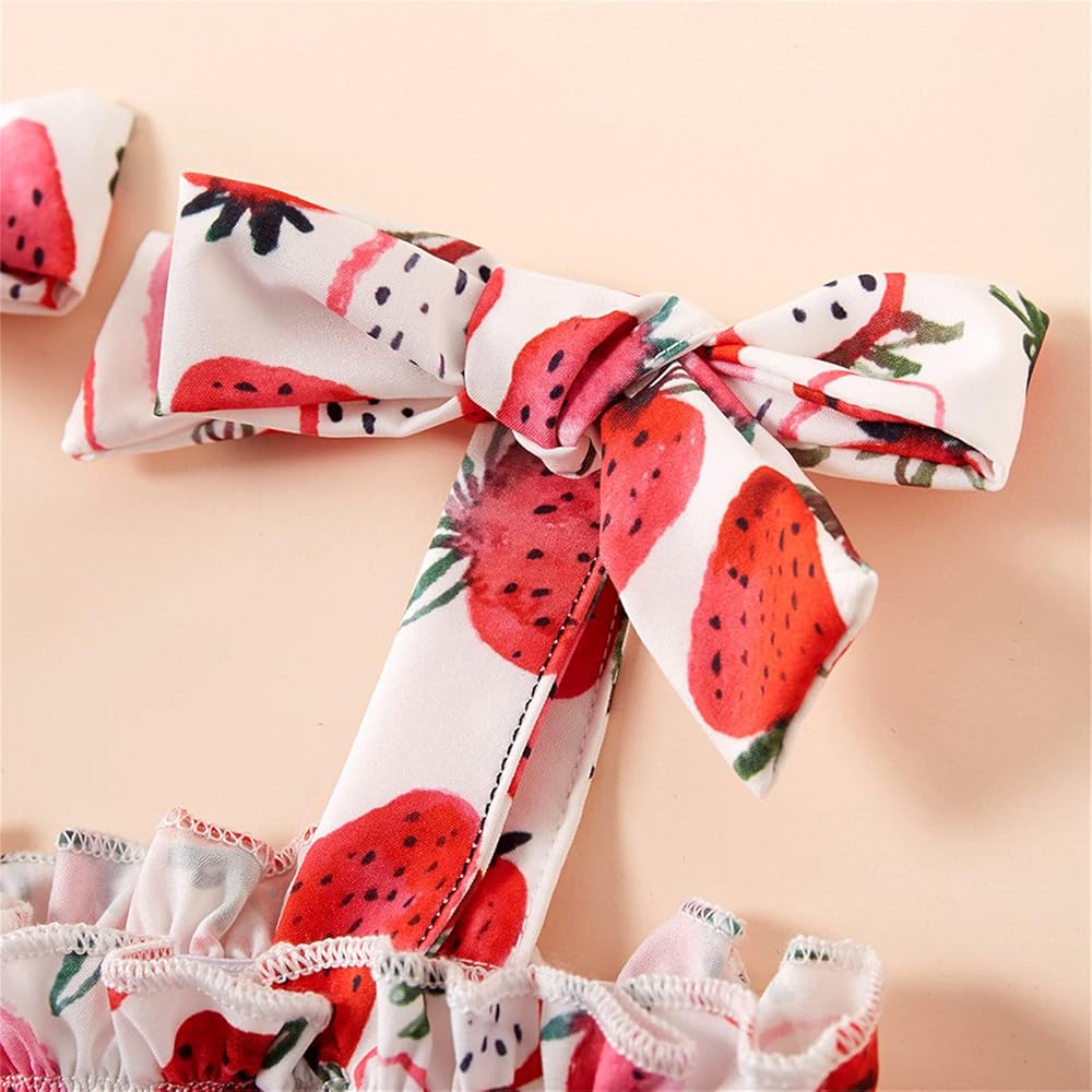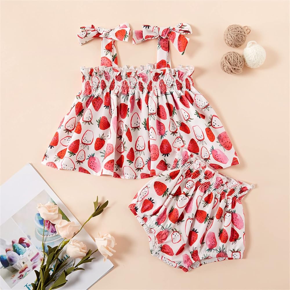 🍓 تصميم لطيف: ملابس فراولة للأميرة الصغيرة، قميص مكشكش، شورت حفاضات فراولة، ملابس صيفية كهدية، سوف تحصل حبيبتك على الكثير من الإطراء عندما ترتديها في الصيف الحار.