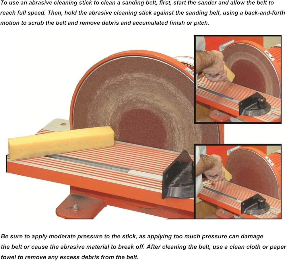 Extend the Life of Sanding Belts: The Abrasive Cleaning Stick extends the life of a belt and disc as it cleans your sander without damaging the grit.