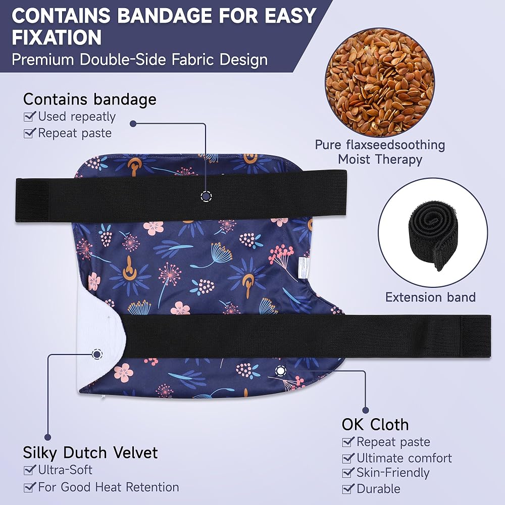 وسادة تدفئة قابلة لإعادة الاستخدام في الميكروويف من ليكالوس للركبتين والأكتاف والمعدة والظهر مع حرارة رطبة، ولف بذر الكتان للرقبة والكتف للتشنجات والعضلات والمفاصل والركبتين والظهر والرقبة والكتفين