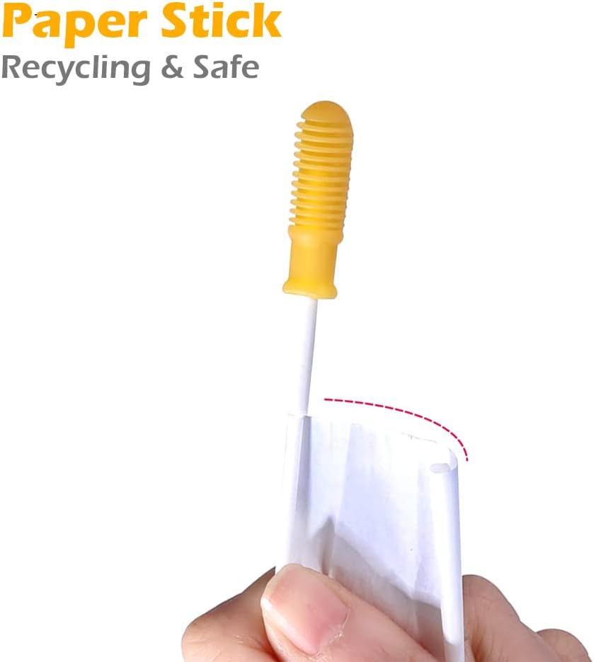 【كيفية الاستخدام】بلل منظف السيليكون الذي يستخدم لمرة واحدة بالماء النقي قبل الاستخدام. ثم قم بتمشيط اللسان بلطف 3-5 مرات لإزالة طلاء اللسان. لا تنقع العصا الورقية في الماء لفترة طويلة.