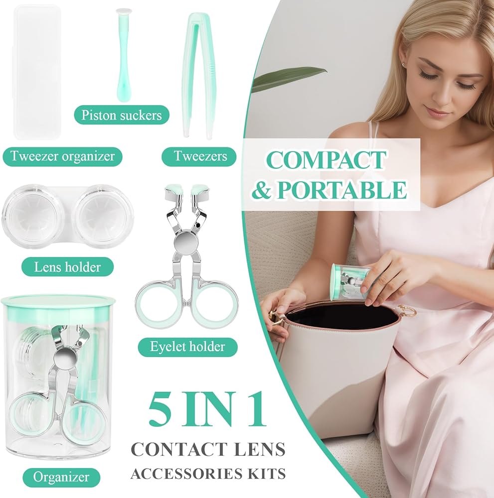 مجموعة أدوات العدسات اللاصقة: تتضمن مشابك العين المفتوحة القابلة للتمدد والملاقط وحافظة العدسات اللاصقة وكوب شفط المكبس لإزالة العدسات اللاصقة. مع زجاجة تخزين صغيرة، تصميم خفيف الوزن وصغير الحجم، يمكنك بسهولة وضع المجموعة في الحقيبة، لا تشغل مساحة، مثالية للحمل، مريحة لك لتغيير العدسات في أي وقت.