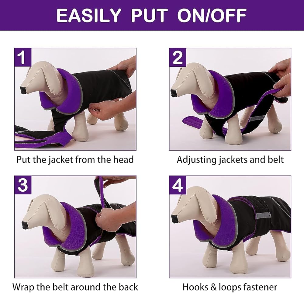 • سهل الارتداء والخلع: مشبك الخطافات والحلقات من الخلف يجعل الملابس ملائمة للجسم. مصنوع من ملصق سحري، سهل الارتداء والخلع. توفر الطبقة الداخلية المبطنة الناعمة السميكة دفء وراحة رائعين، ولكنها لن تحد من مشي الكلاب. يحافظ جزء البطن على بطن كلابك من الثلج أو أوراق الشجر أو أي عناصر خارجية أخرى بفضل التغطية الجيدة للبطن.