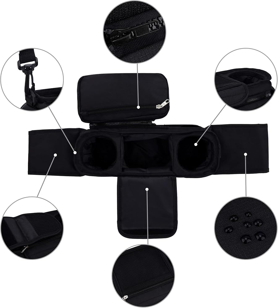 【ملاءمة عالمية】 مصمم ليناسب جميع أنواع عربات الأطفال وعربات الأطفال والعلب والعربات وكراسي الدفع، يتميز منظم عربة الأطفال هذا بحزامين فيلكرو آمنين وقابلين للتعديل بالكامل. إنه سريع وسهل التركيب والإزالة.