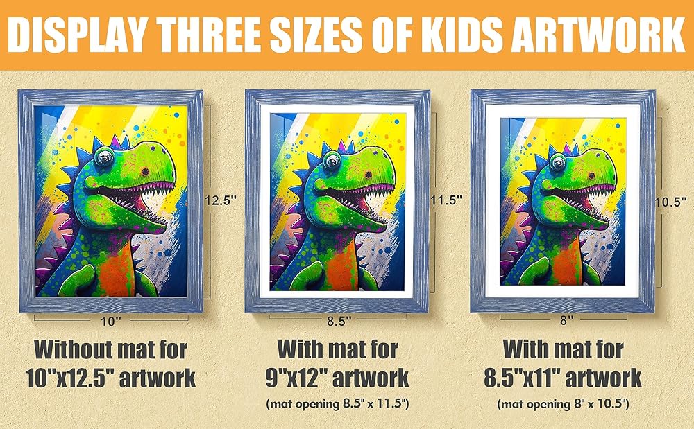 🎯مناسب لـ 3 أحجام من أوراق الرسم: تلتزم Tiblue بإنشاء إطارات عرض فنية متعددة الاستخدامات للأطفال للأعمال الفنية للأطفال التي تناسب مجموعة متنوعة من أوراق الرسم، كل إطار مشروع فني للأطفال لأعمال فنية مقاس 10 × 12.5 بوصة بدون حصيرة يأتي مع قطعتين من السجادات لعرض 9x12 أو 8.5x11/A4 مع حصيرة لتلبية جميع احتياجاتك. (ملاحظة: فتحة السجادة الفعلية هي 8.5 × 11.5 أو 8 × 10.5) اللوحة الخلفية في إطارات الأطفال الفنية لمشاريع الأطفال الفنية تحمل الأعمال الفنية للأطفال مع السجادة، وتجنب تلف الأعمال الفنية بسبب الشريط.